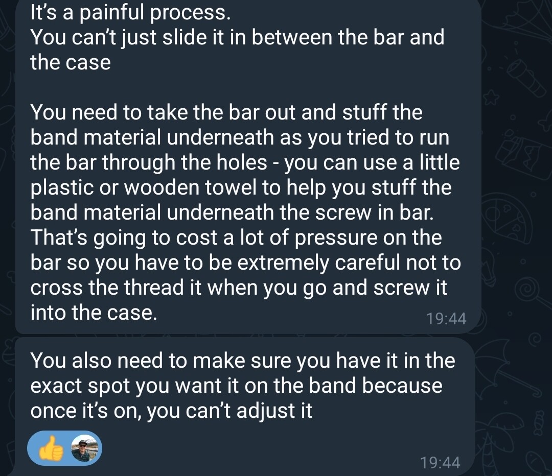 Misschien de nato tussen de lugs leggen en dan pas de bars er in?