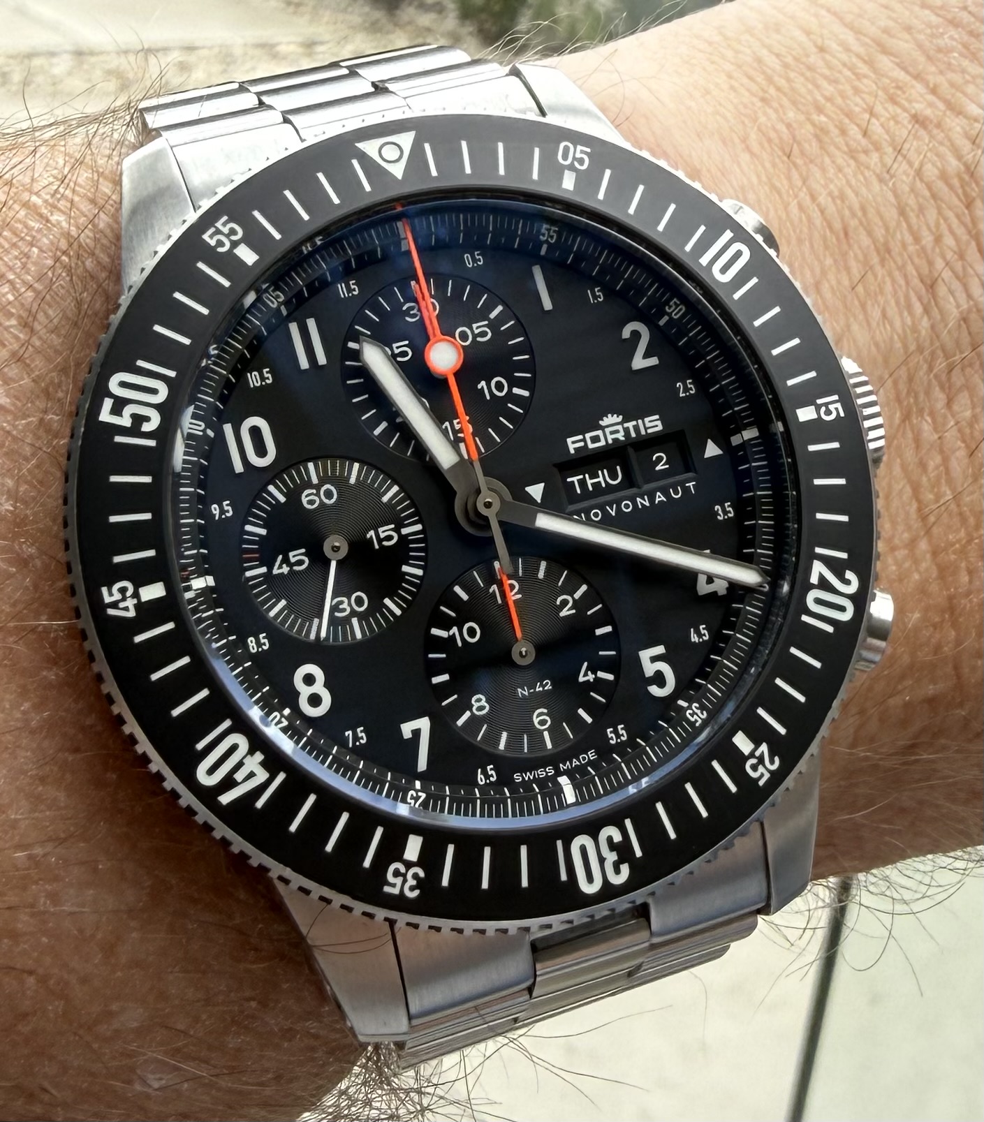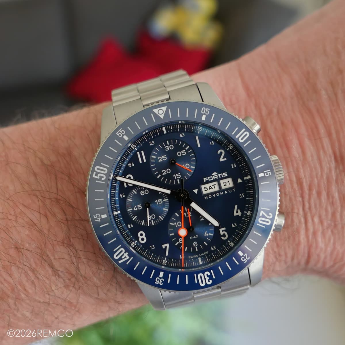 De blauwe Novonaut is echt een héél erg fraai horloge, maar ‘niet voor ieders pols’ heb ik gemerkt. Het gewicht en de hoogte/dikte hebben mij genekt. Misschien in de toekomst de Titanium versie ook eens proberen, maar ja … die is er niet in het blauw (wat ik wel héél gaaf vind!) met die frivole oranje wijzertjes. Hmmm. Nou ja, ik ga nu even verder met mijn Tudor Harrods en sinds vandaag ook een Omega Seamaster Pro 300M.