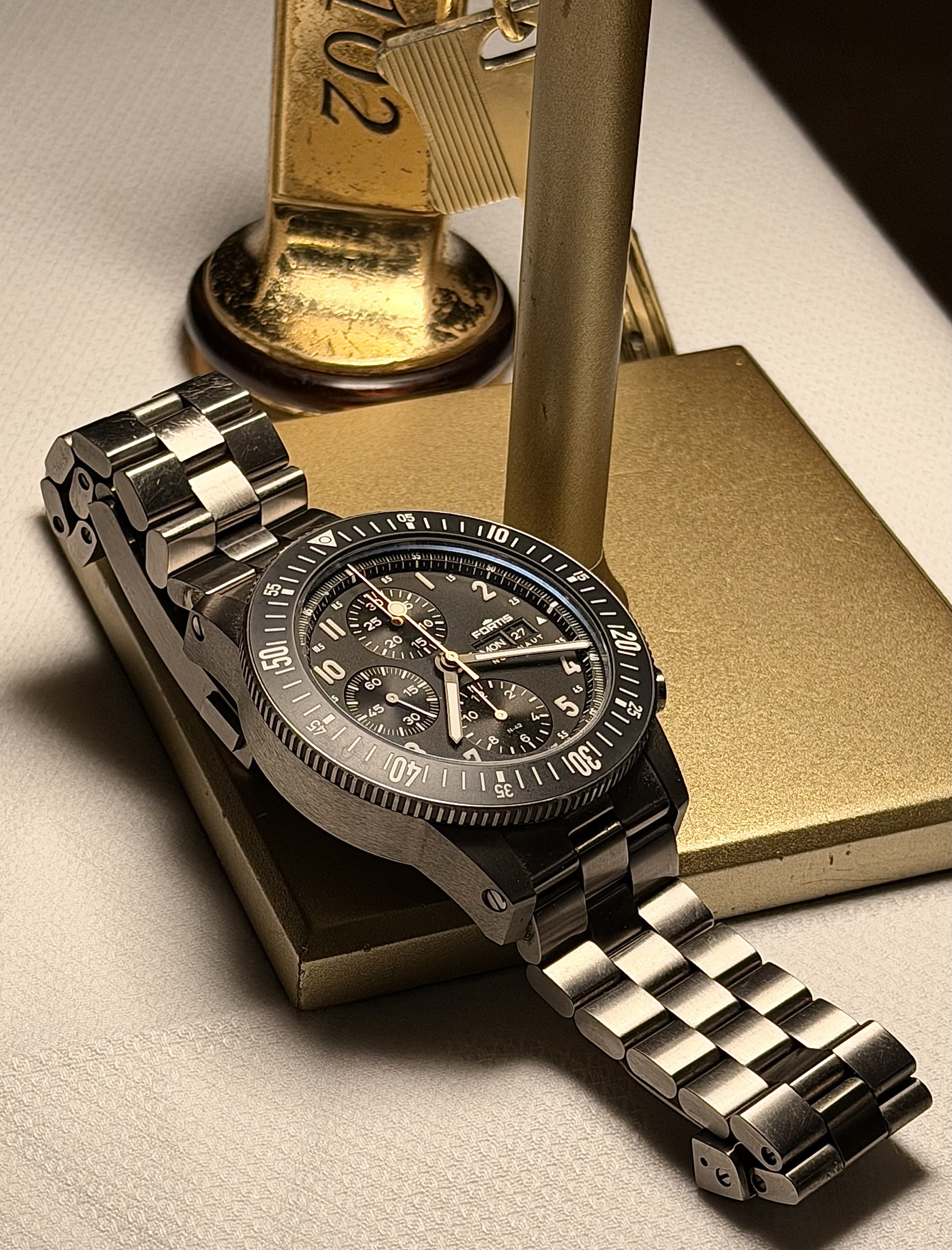 . Je kan bij mij of @Subonno de “titanium Legacy” proberen, die voldoet denk ik wel aan je wensen. De wijzers zijn goldplated bij de titanium variant. De Legacy Edition heeft wel,de oranje accenten