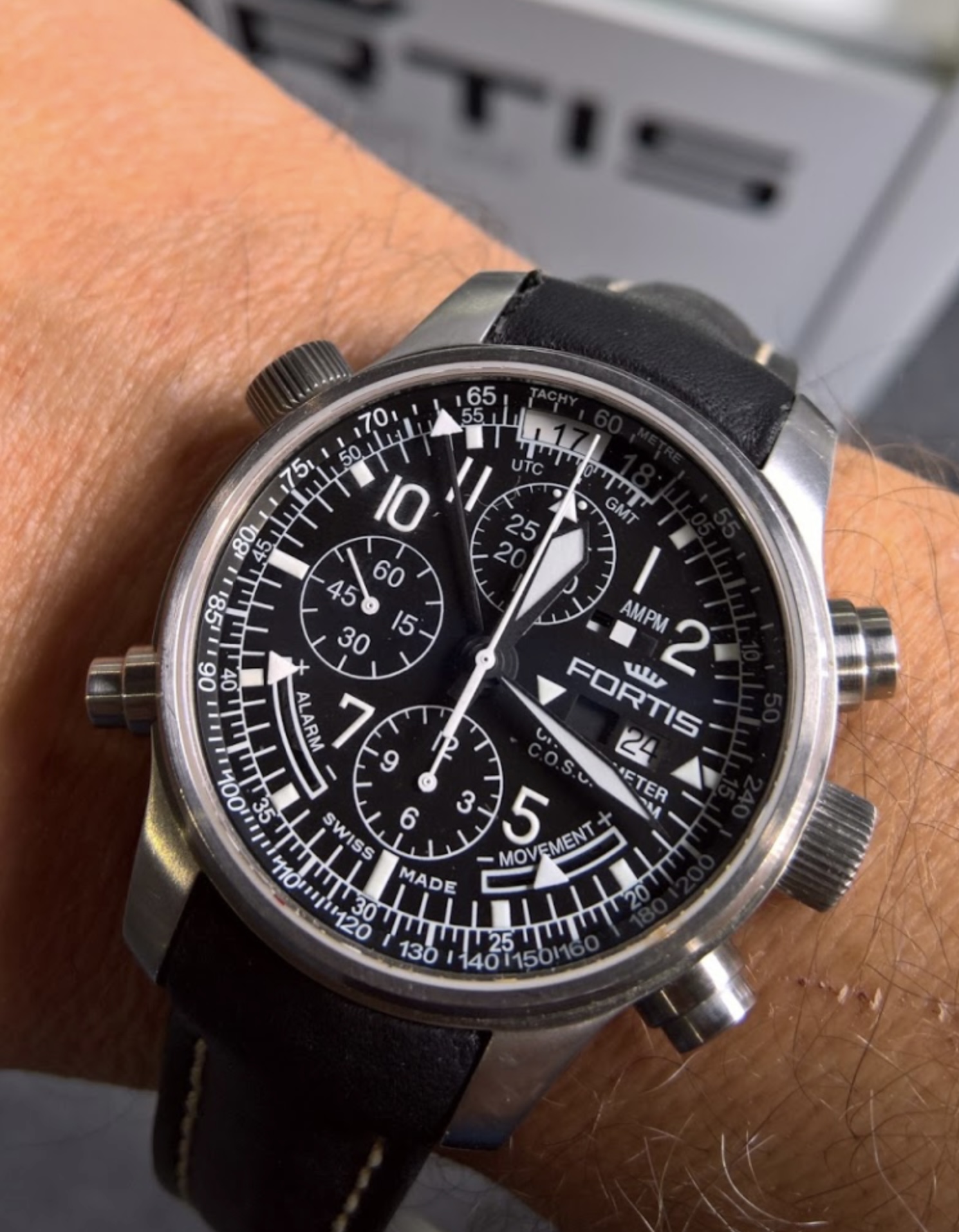 Heren (en dames?) die Fortis diep in de aderen hebben: heeft Fortis ooit een chronograaf gemaakt in titanium, met draaibezel (countdown of count-up, boeit mij niet, als 't maar geen draai GMT bezel is) maar met GMT complicatie?