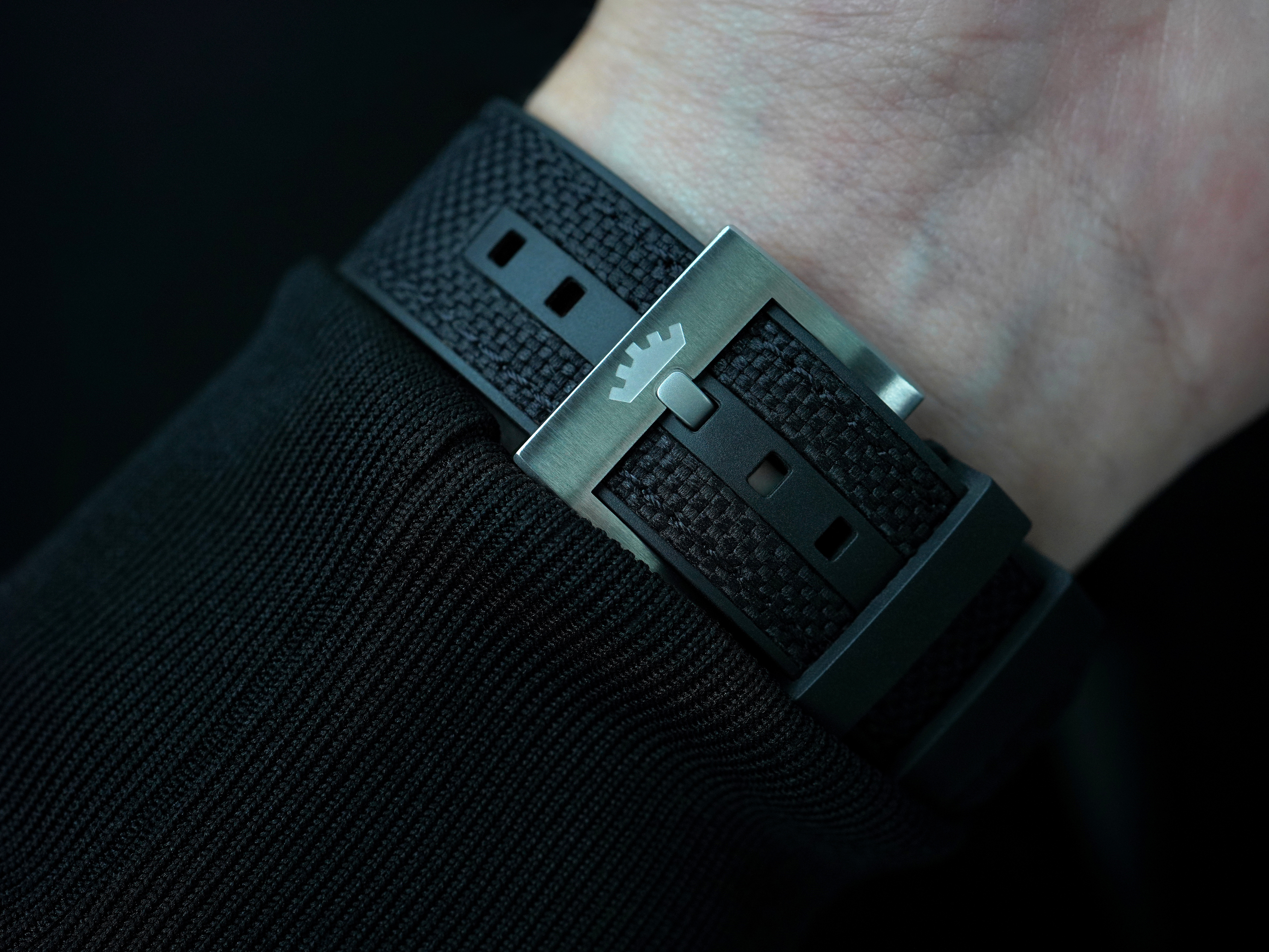 iemand toevallig een foto van de titanium novonaut op zwarte hybrid strap?