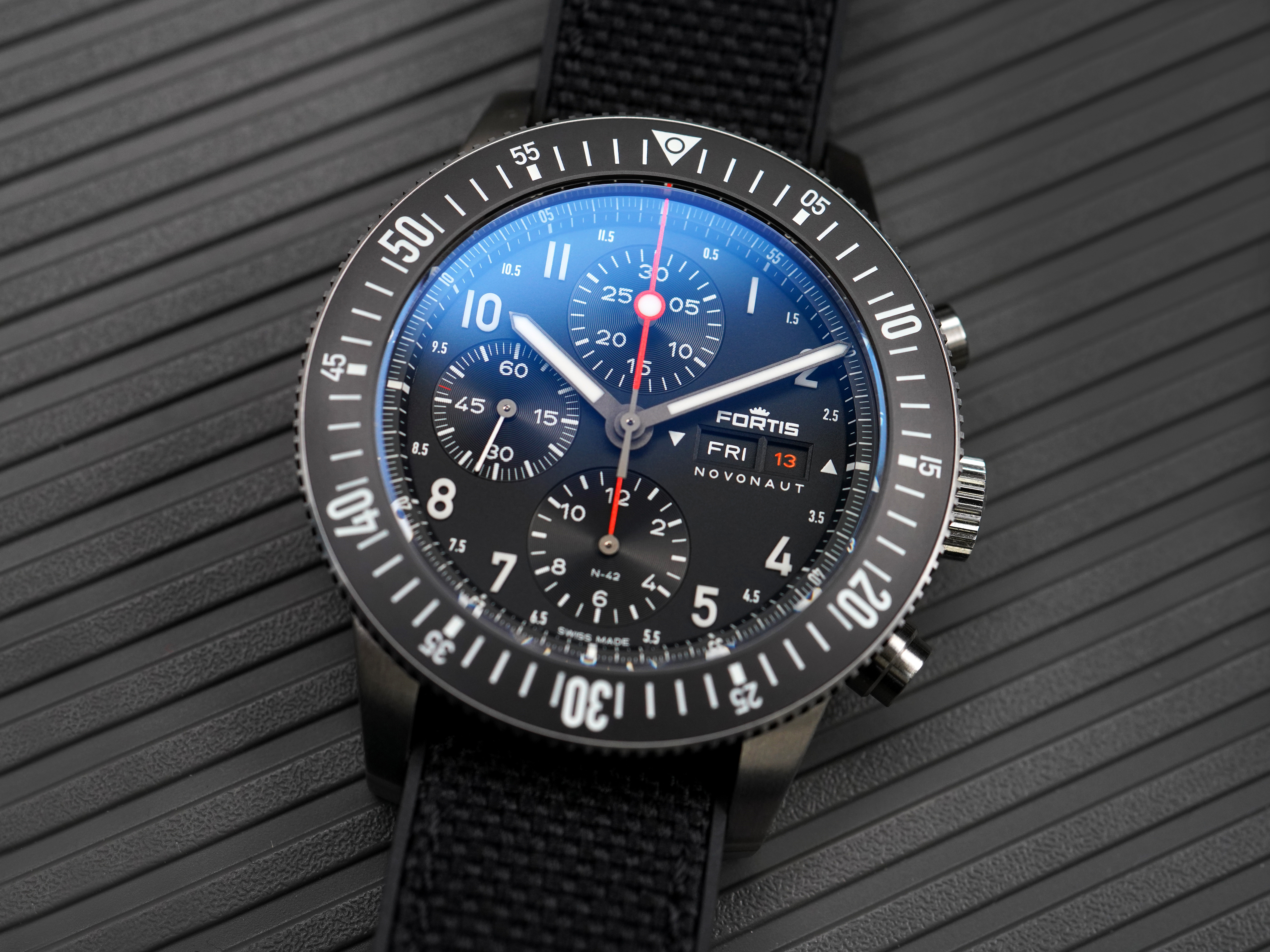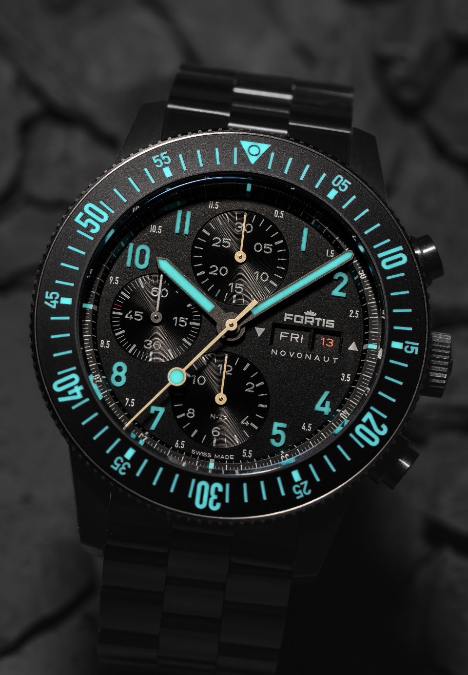 Verder heeft de Novonaut natuurlijk bijzondere onderscheidende features waaronder de lumicast cijfers op de wijzerplaat. Extreem veel superluminova verwerkt op deze manier. Wat de afleesbaarheid ongeëvenaard maakt.