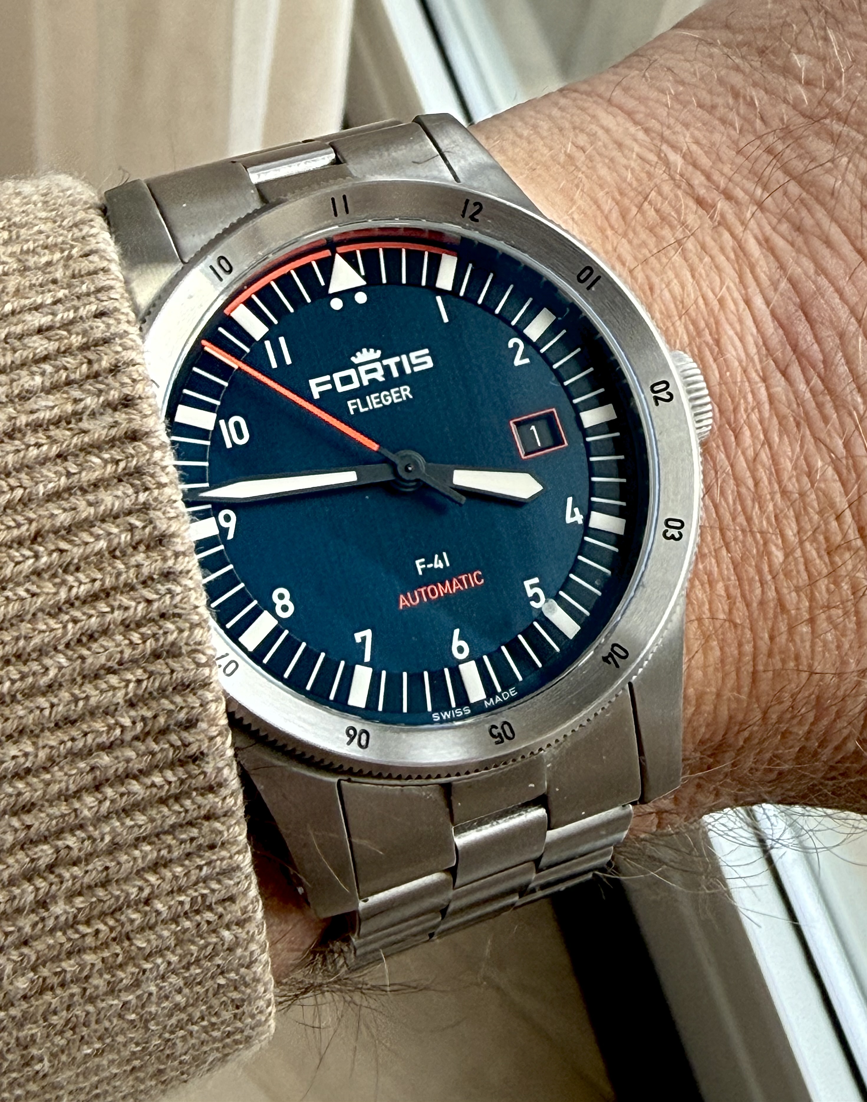 De bijzondere dial van de Fortis Flieger F-41 Midnight Blue (limited edition)