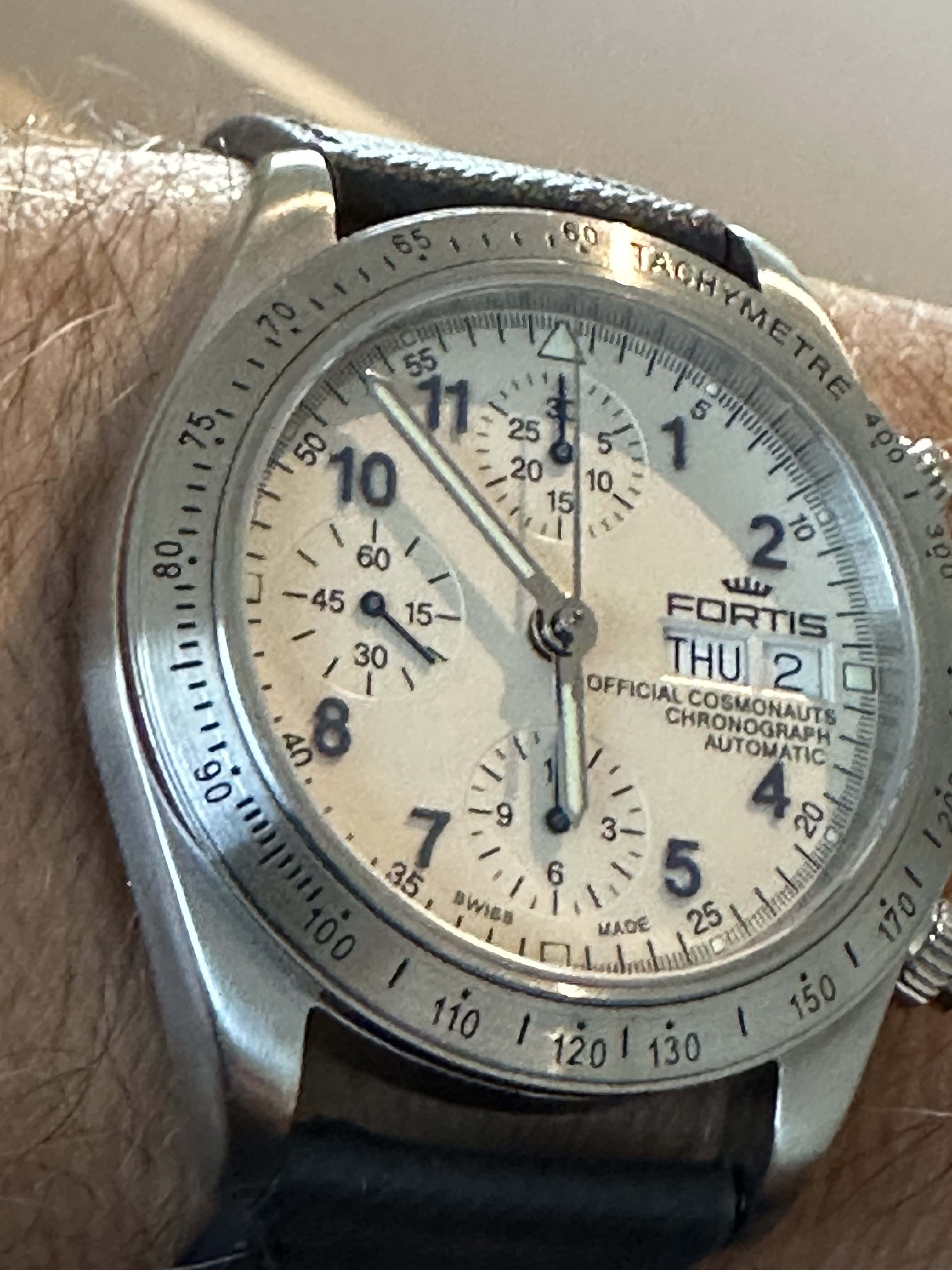 Dan switch ik even snel naar mijn casiotje maar dat is toch een beetje minder spannend. Een stevige maar mooie Fortis zou die plek goed in kunnen nemen