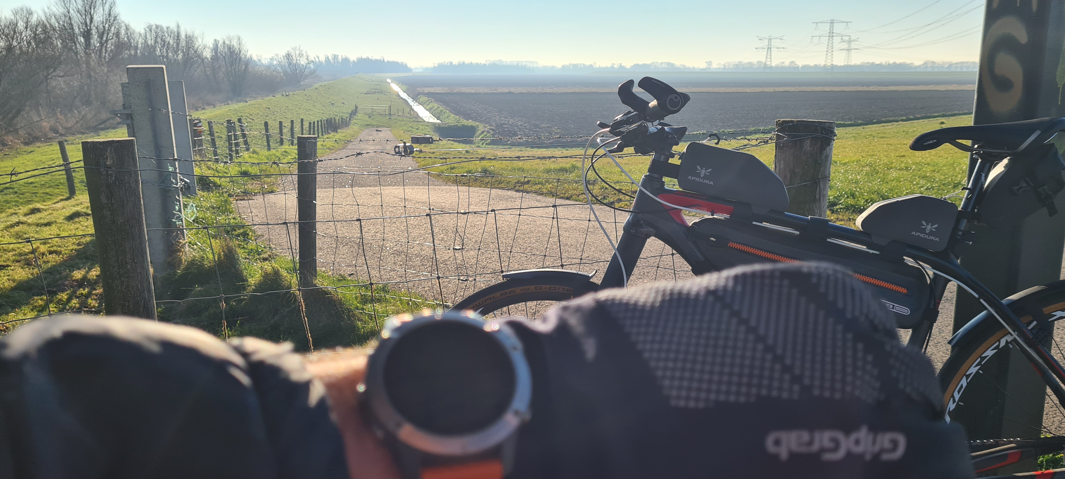 Garmin Edge op het racefiets stuur en niks om de pols want dat vind ik niet comfortabel met alle trillingen van het stuur. Dit is wel echt de enige uitzondering dat ik geen horloge draag…