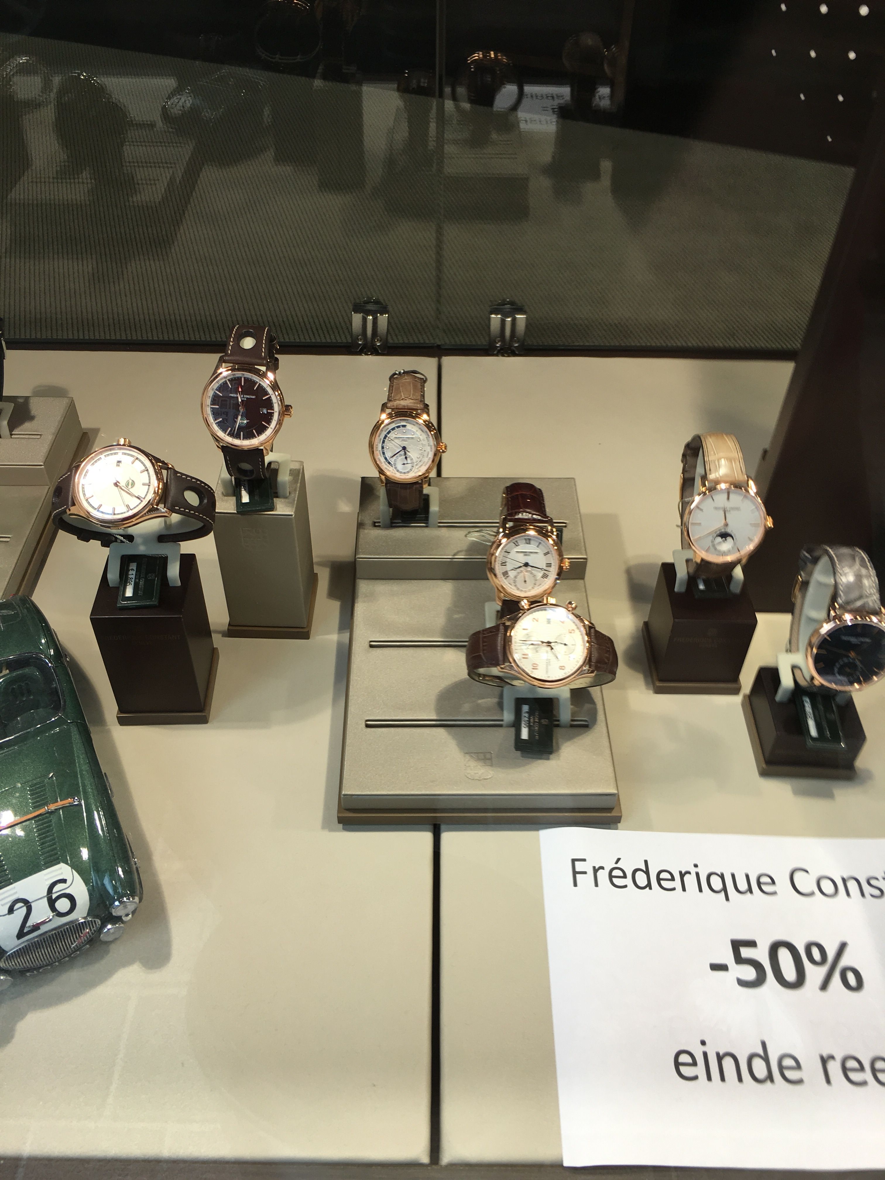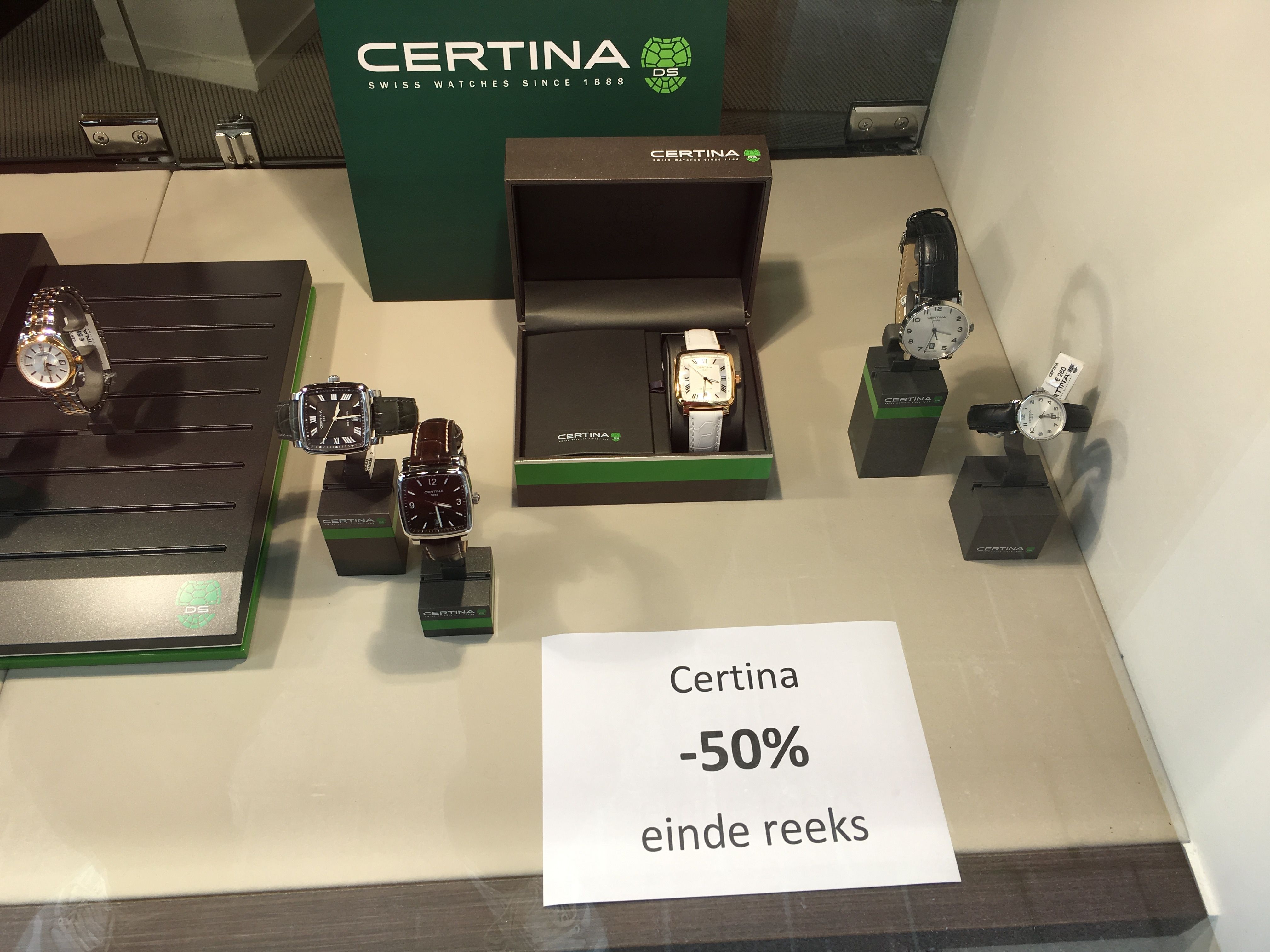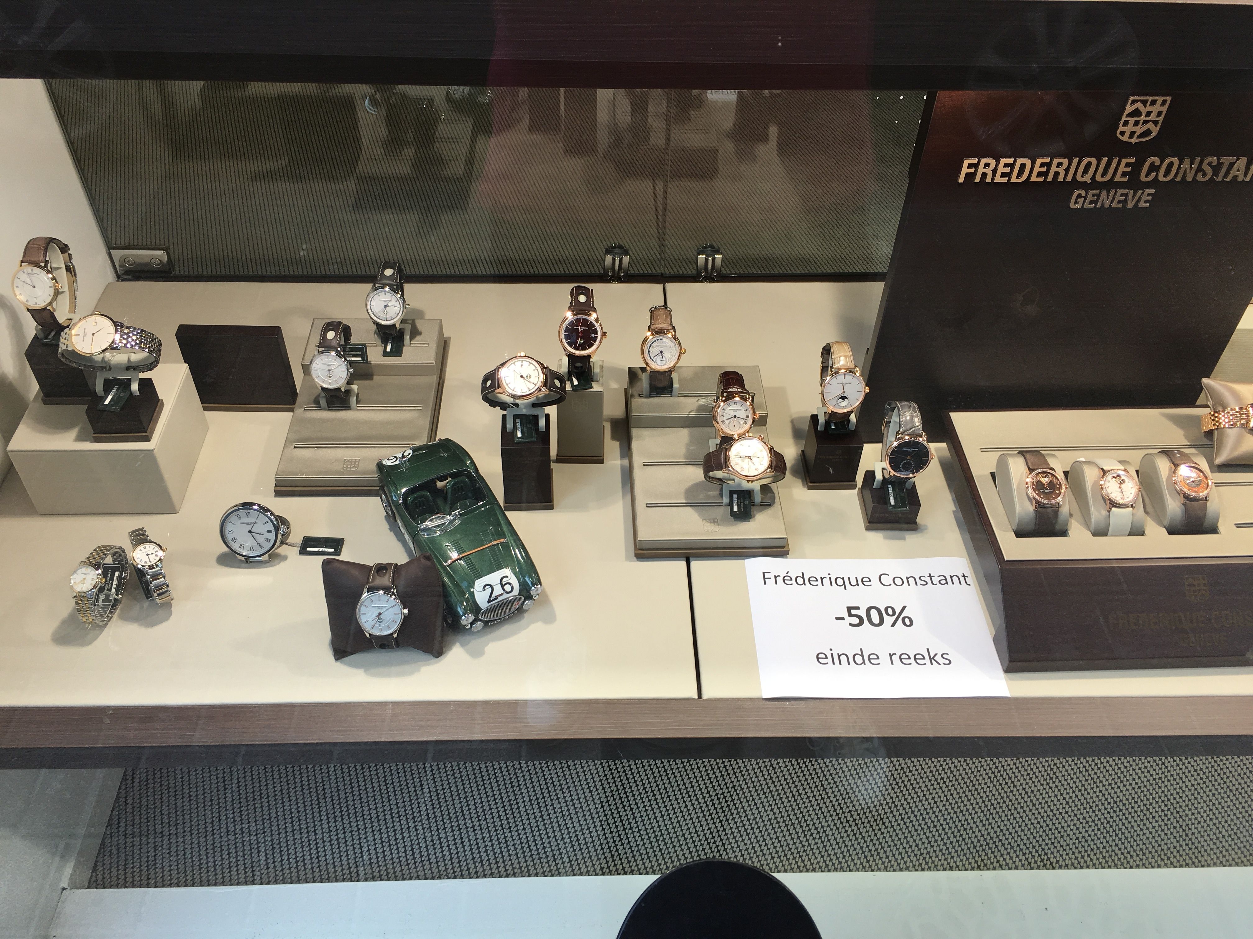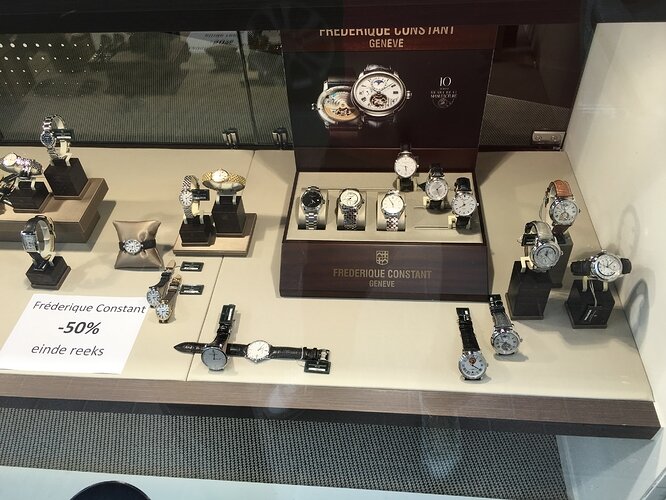 Bij Heleven Eddy in Hasselt staan de laatste reeksen van Frederique Constant en Certina aan 50%.