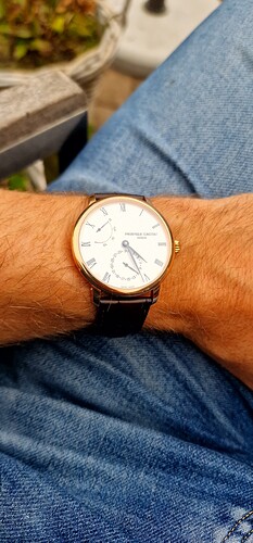 Zie hier mijn horloge met een wat klassieker wijzerplaat, doch met hetzelfde binnenwerk (FC 775 series)