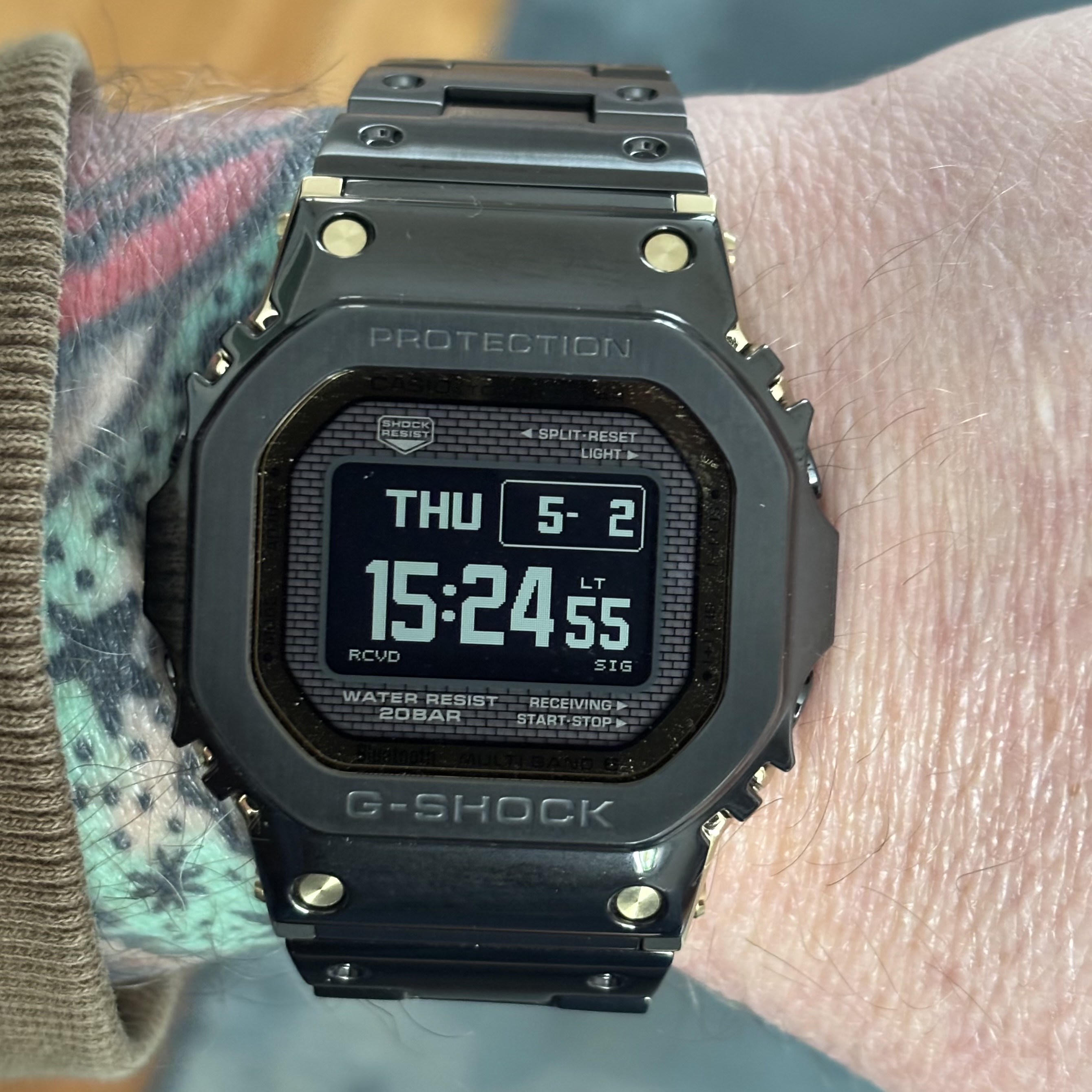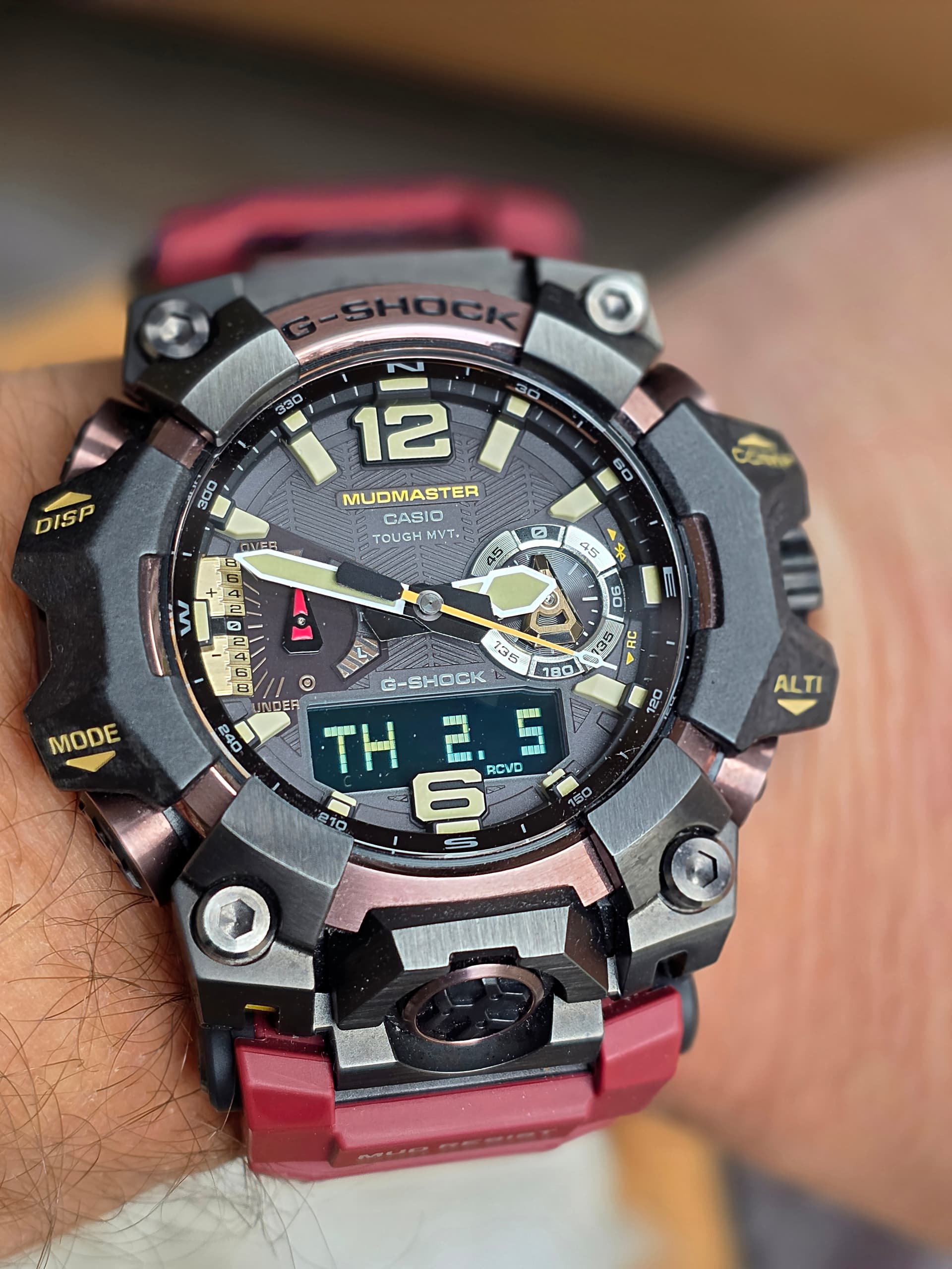 Maar hij mag weer uitrusten tot morgen en nu gaat de Mudmaster weer om de pols