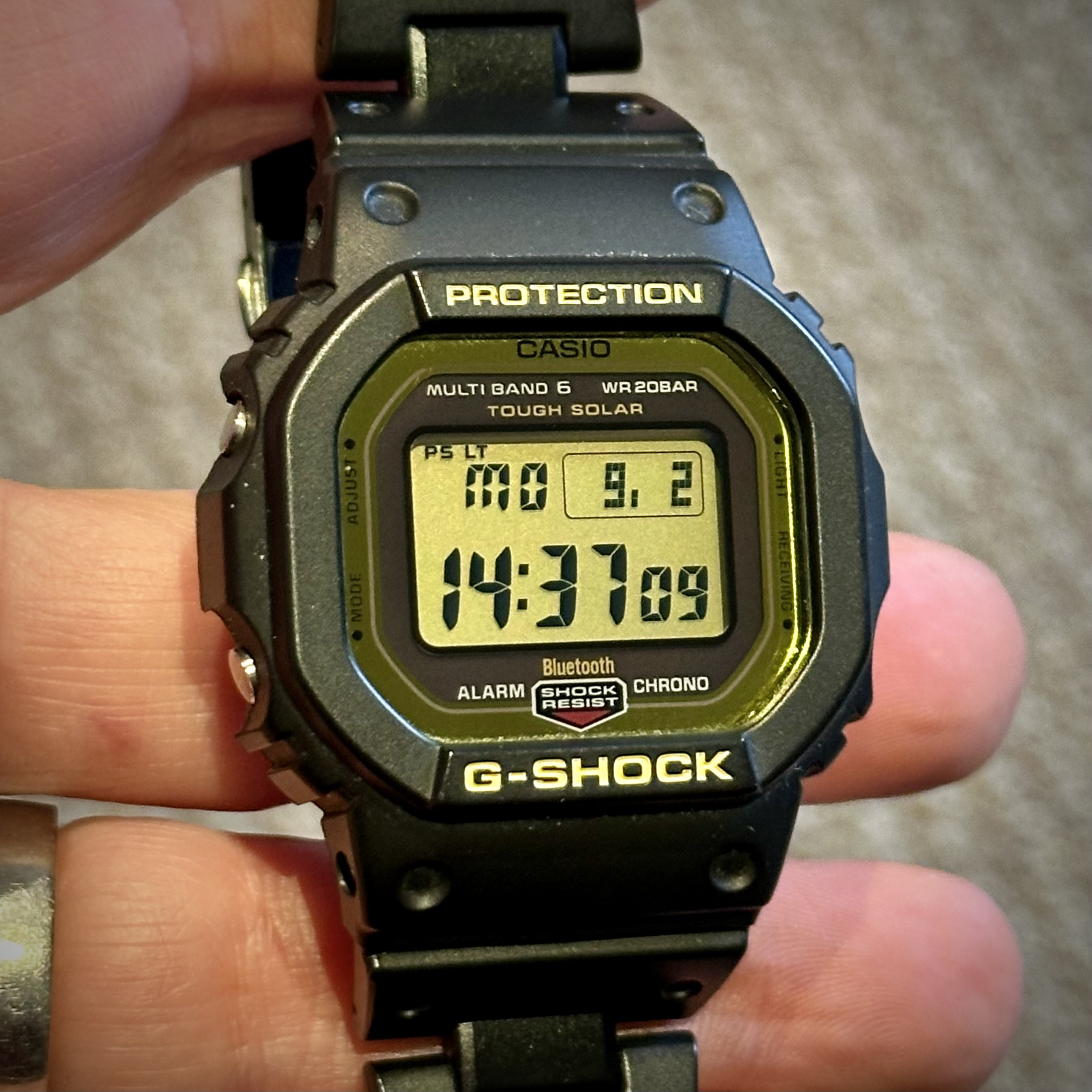 Perfect, een 2100 die mooi soepel om de pols valt vanwege de titanium band ⊠en een stuk lichter dan de geheel metalen gmw-5000.