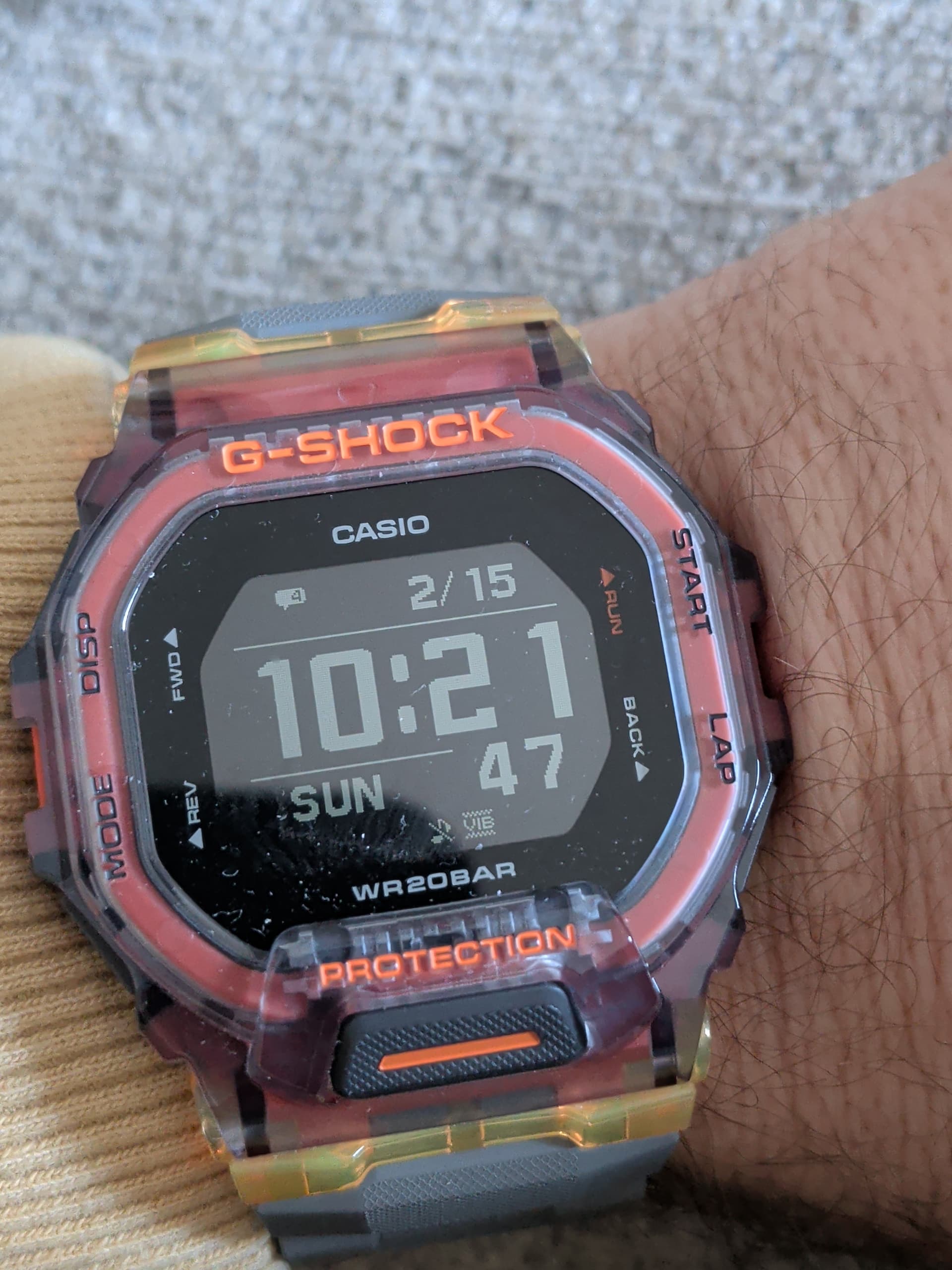 Ik had hem in de zon moeten leggen vandaag, zie op de Casio app dat hij bijna leeg is, het was een perfecte dag ervoor hier in het noorden…