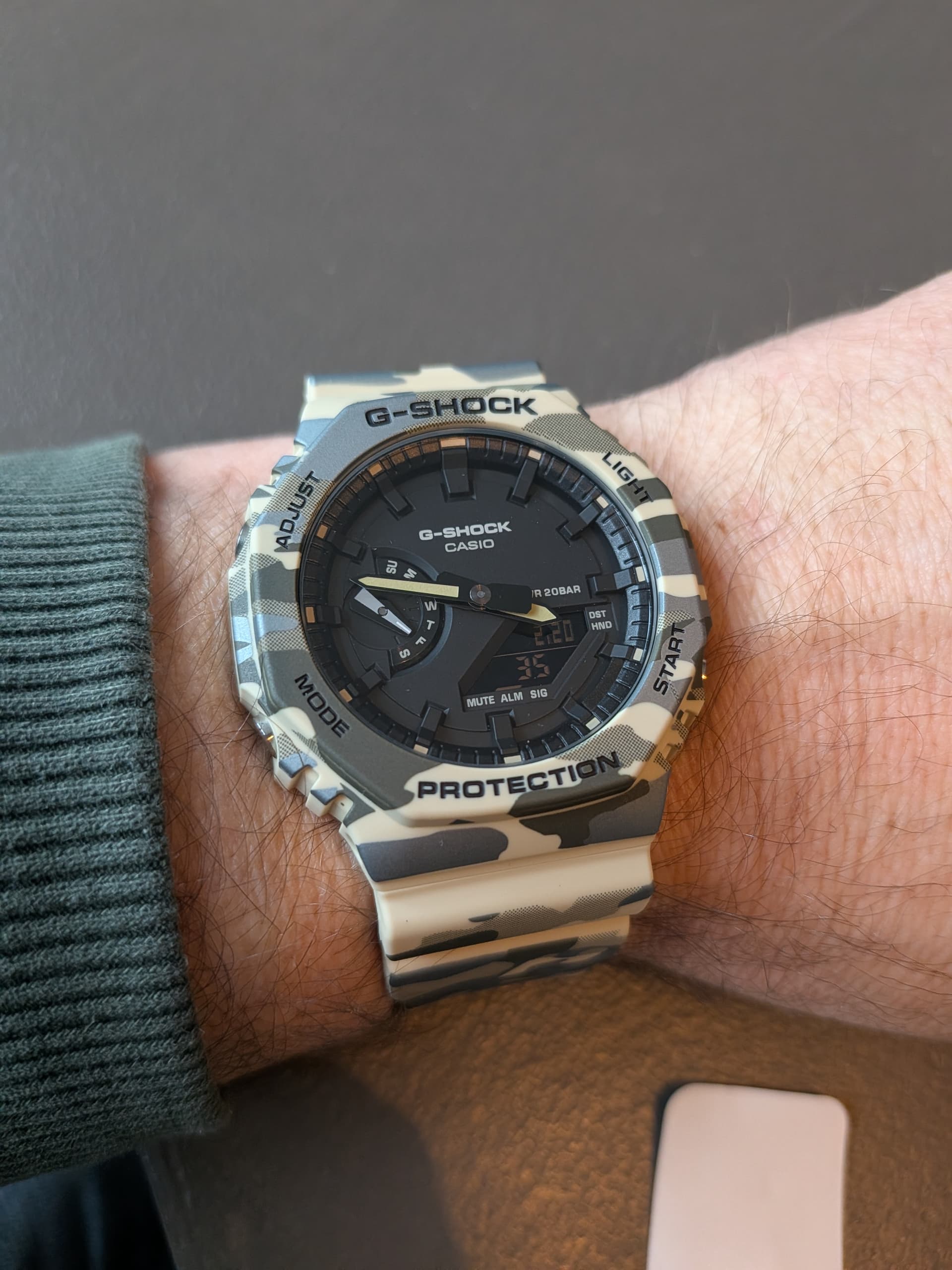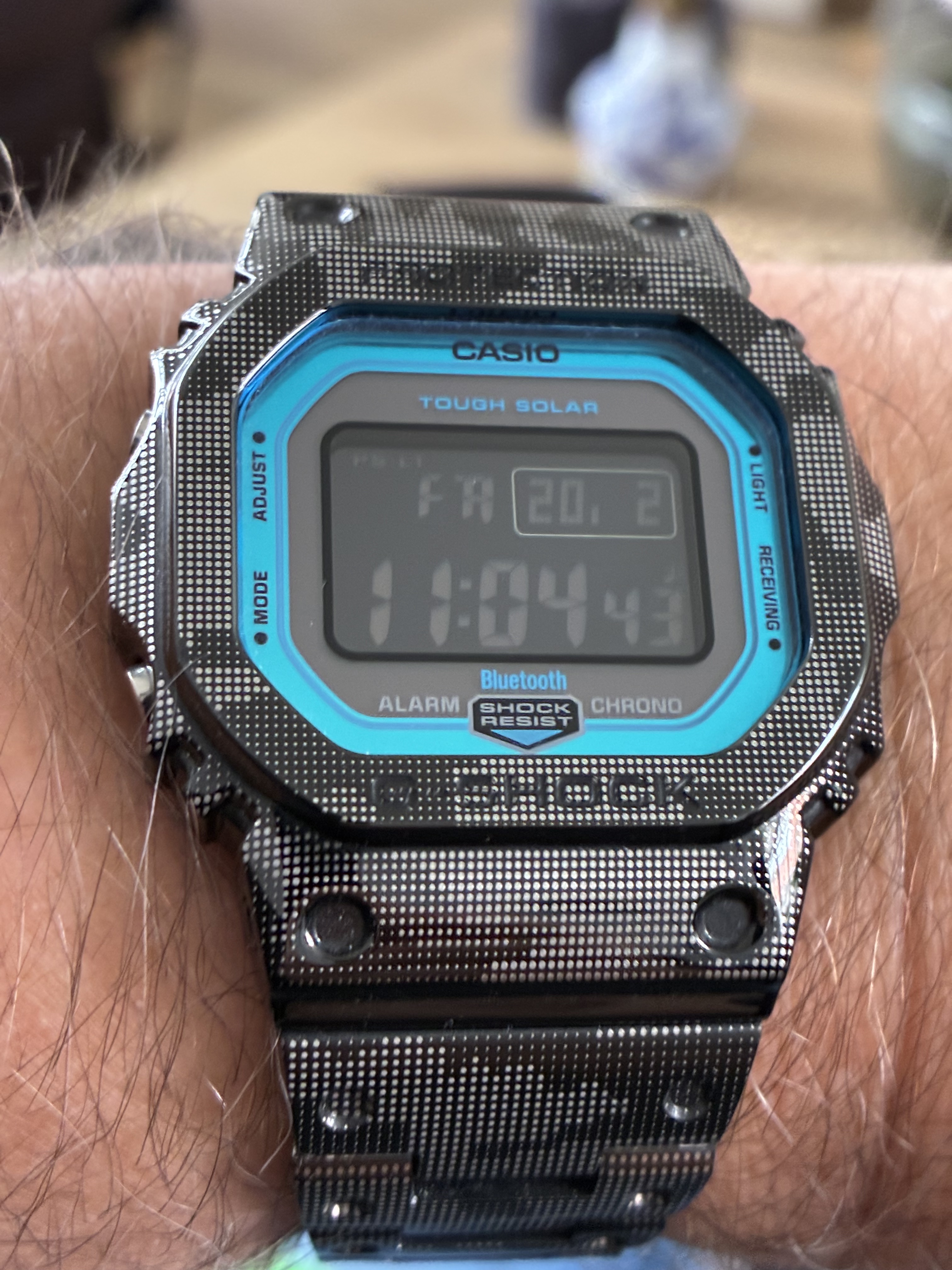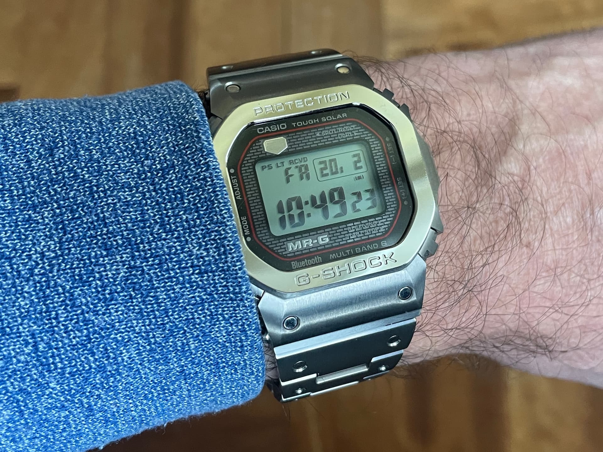 Dit zou weleens mijn allerlaatste horloge kunnen zijn, voor mij klopt echt álles eraan. Het vakmanschap, de exclusiviteit en dan vooral het feit dat niemand dat weet, de tint van het titanium, de perfecte spiegeling van de bezel zonder vervormingen, het feit dat ie altijd 100% goed loopt, het piepje elk uur (net iets volwassener dan het snellere en hogere piepje van mijn GW5000), de fade-in en fade-uit verlichting, de historie. Ik raak er maar niet aan gewend.