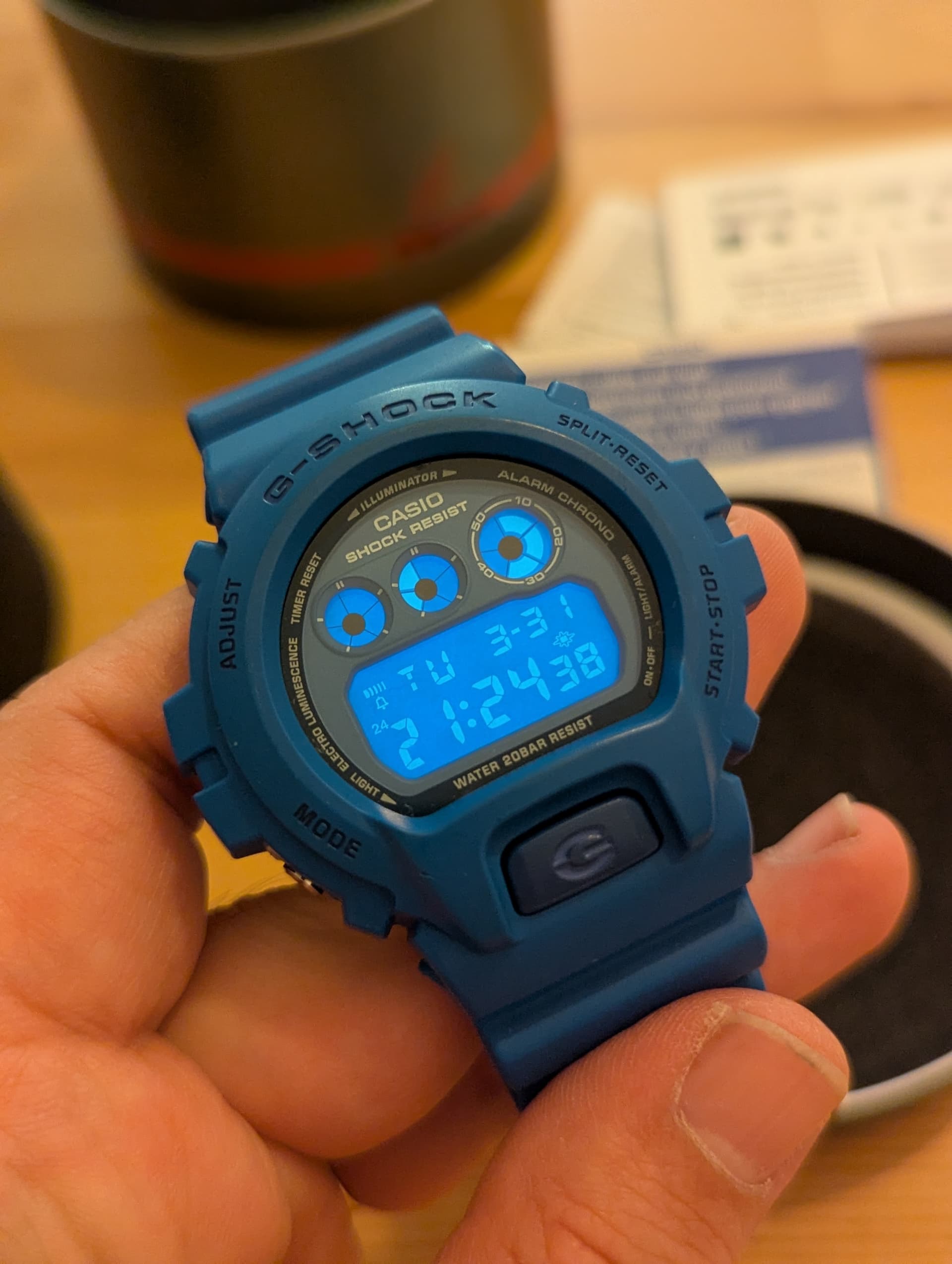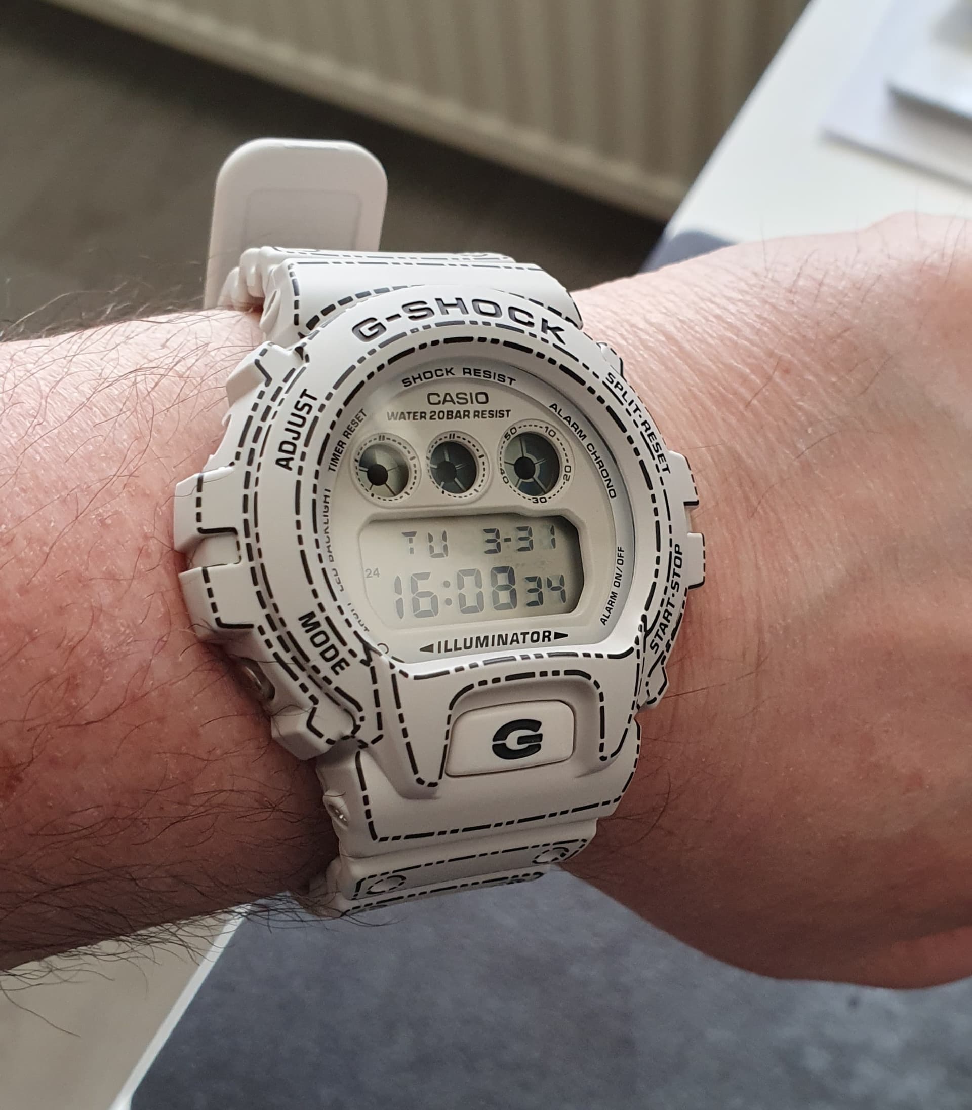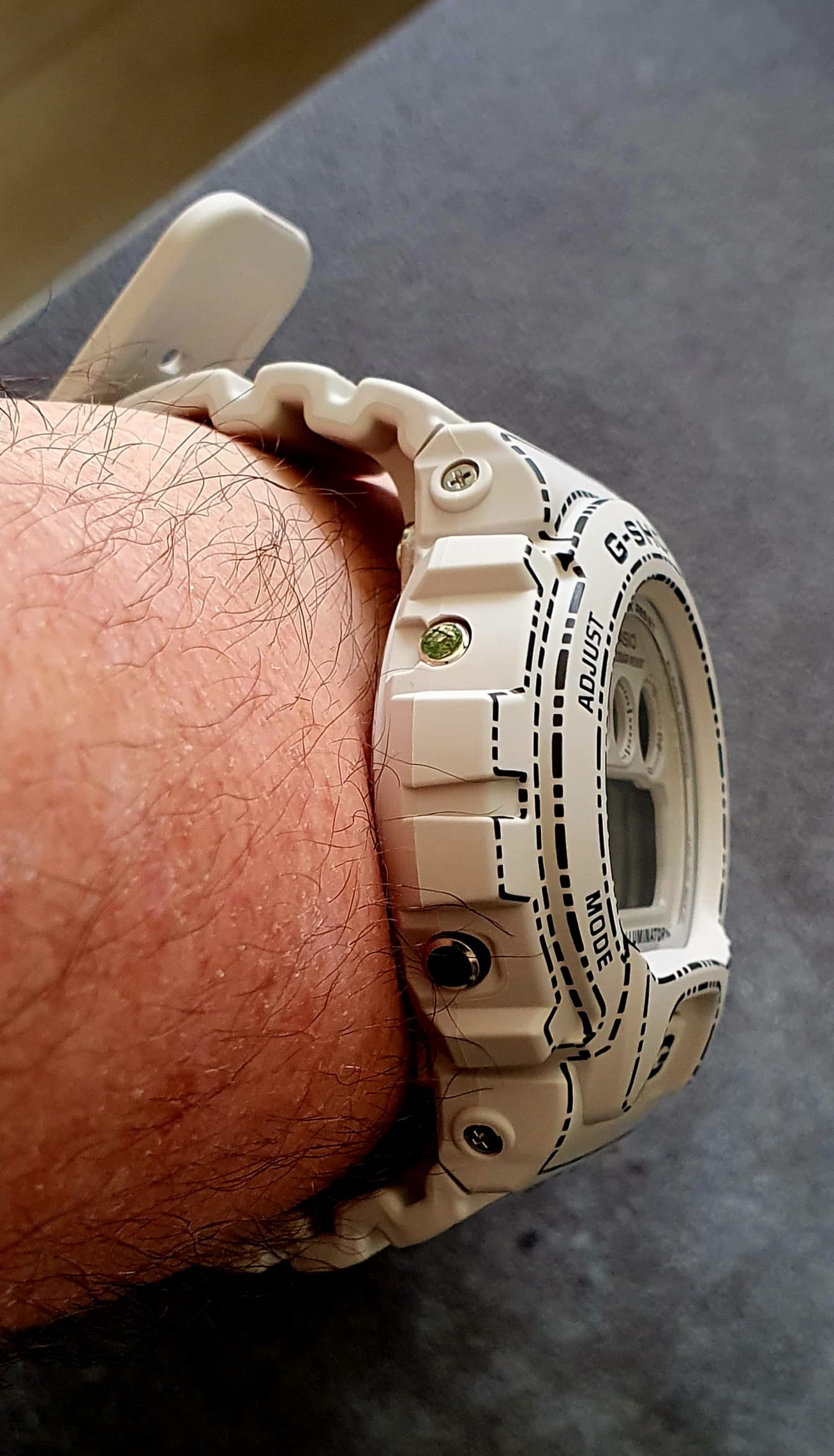 nog nooit een 6900 gehad. Groot en dik, ja, dat wist ik maar dat vind ik niet erg, ik draag hem toch niet dagelijks en de kleur is best gaaf, soort licht grijs, terwijl het op veel foto’s toch vaak wit lijkt.