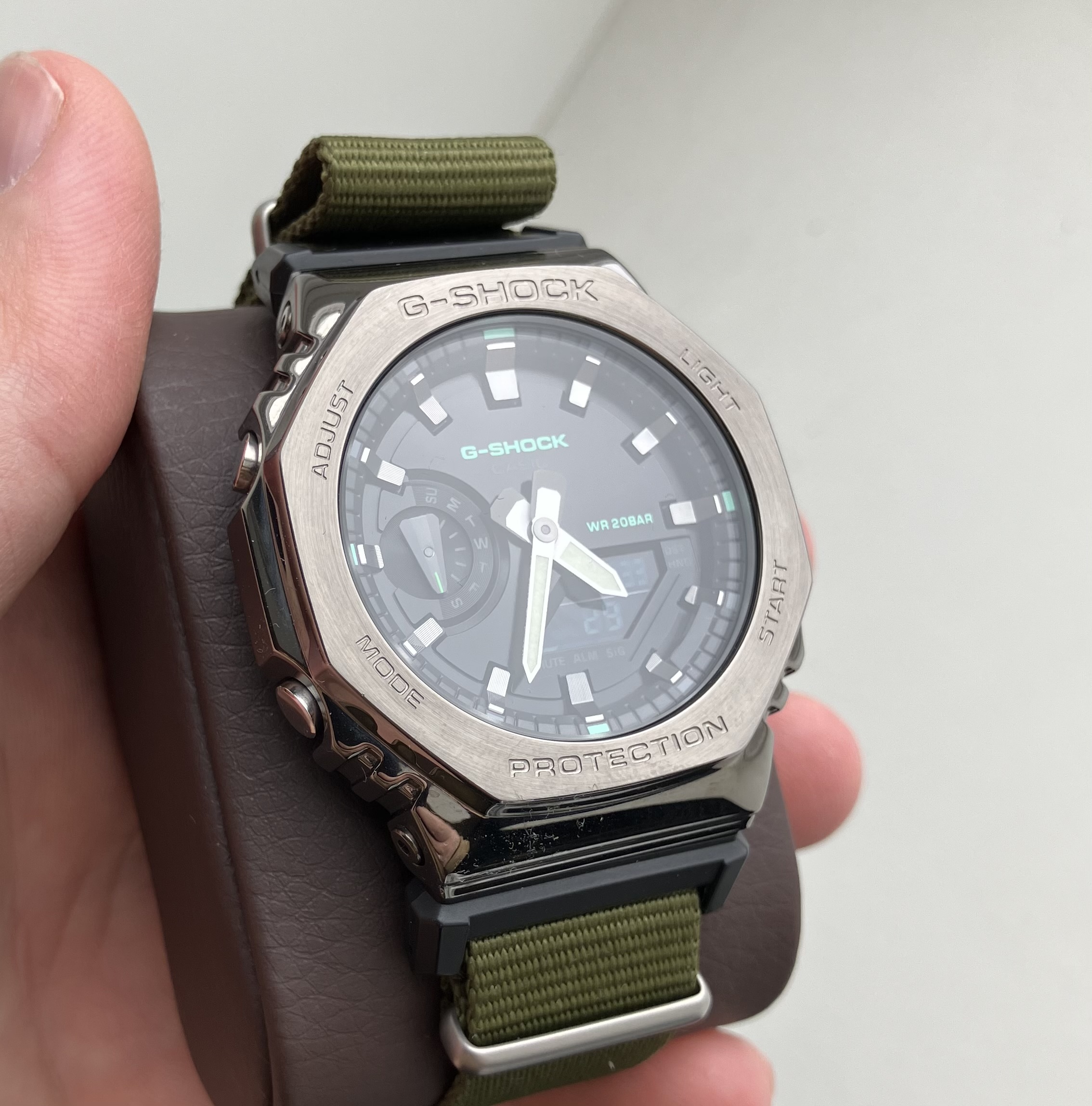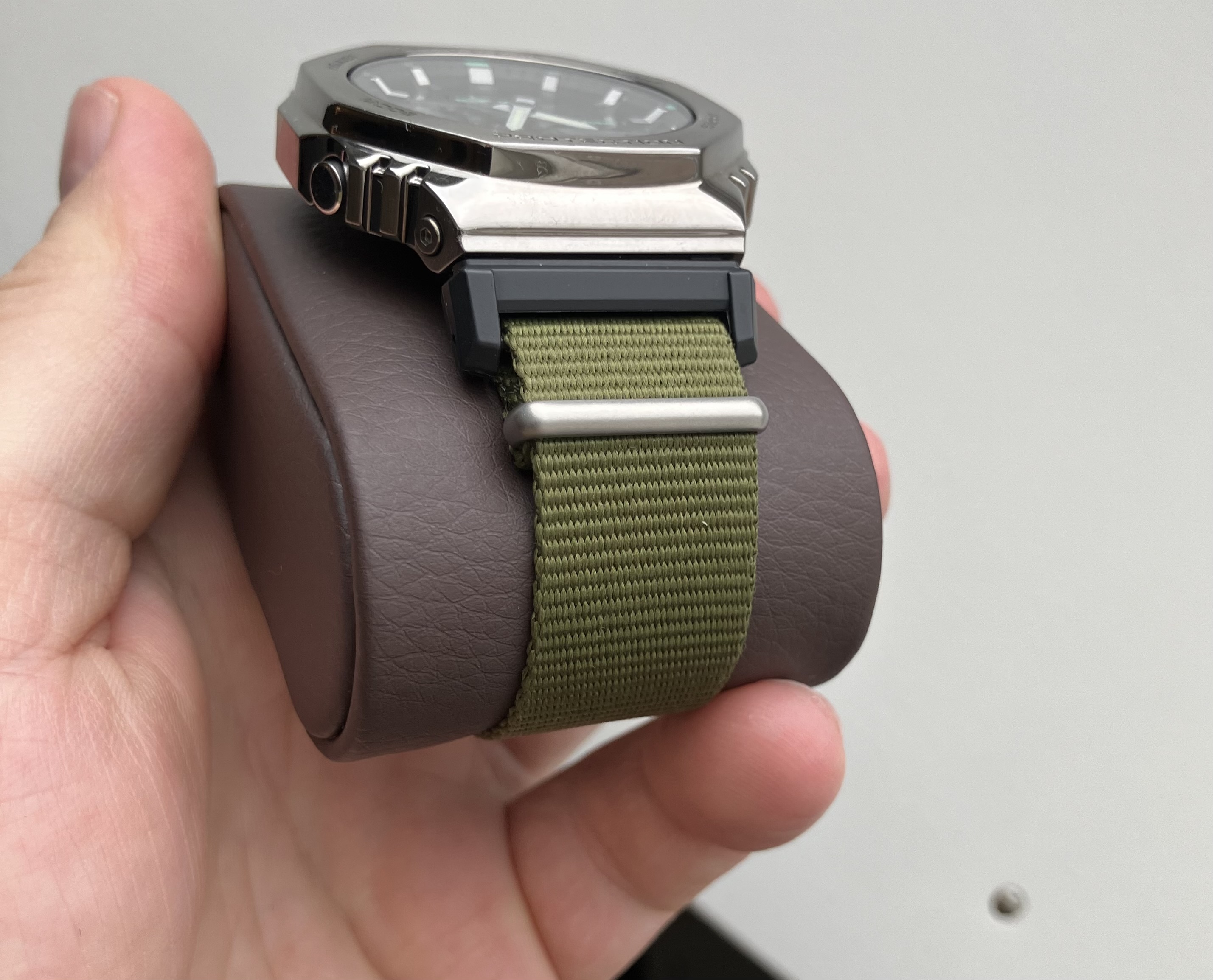 Ik heb op die van mij (GM-2100) ook een groene Nato gezet, alleen soms valt de kleur van die bandjes net iets te licht groen uit, iets donkerder groen vind ik wat mooier.