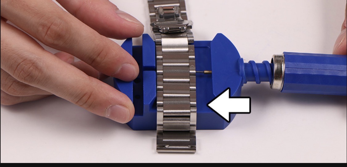 Een opengebogen paperclip waar ik de punt rond maak met een nagelvijltje (paperclips zijn veel zachter dan het staal of het titanium van de horlogebanden die ik heb)