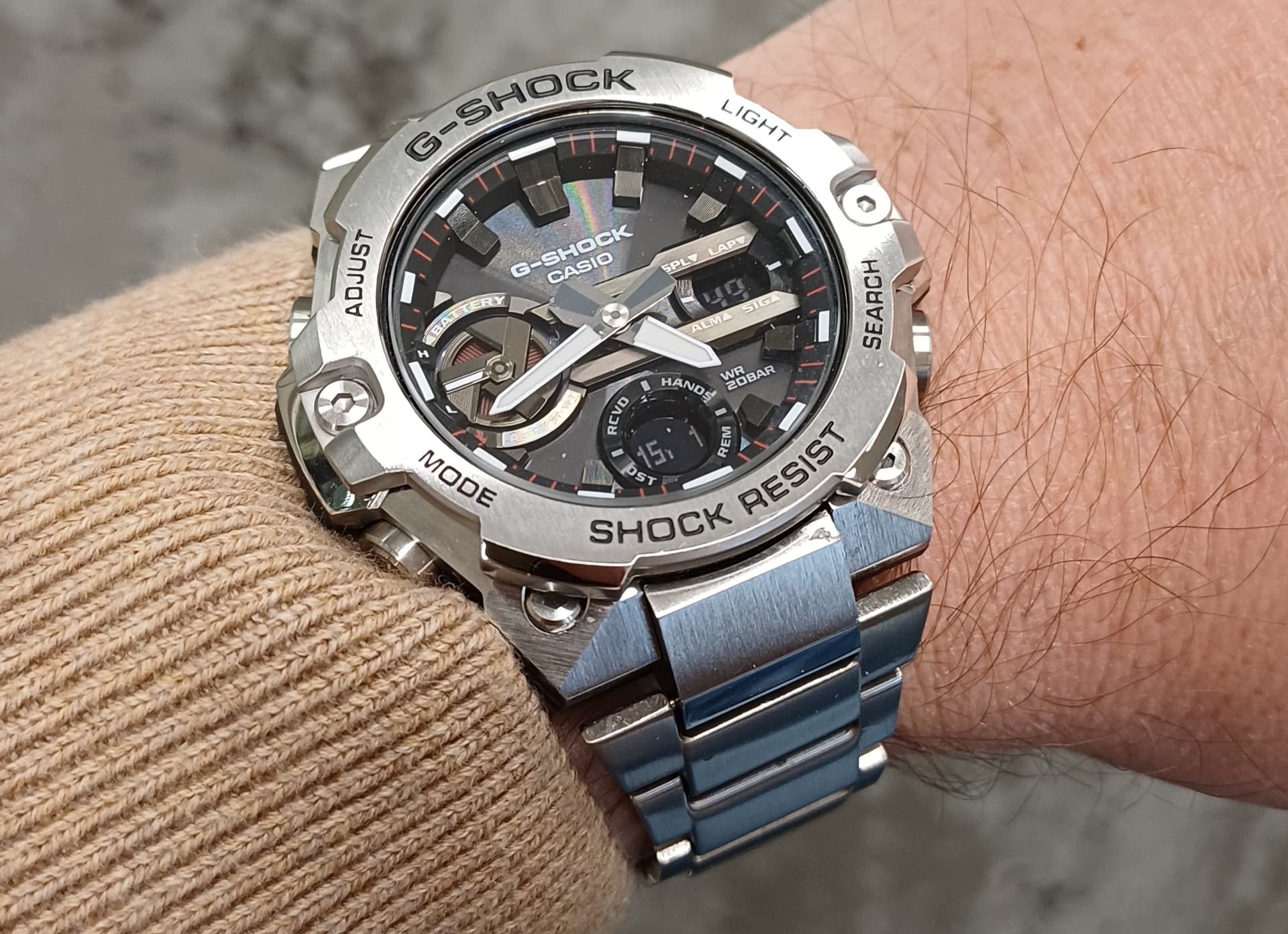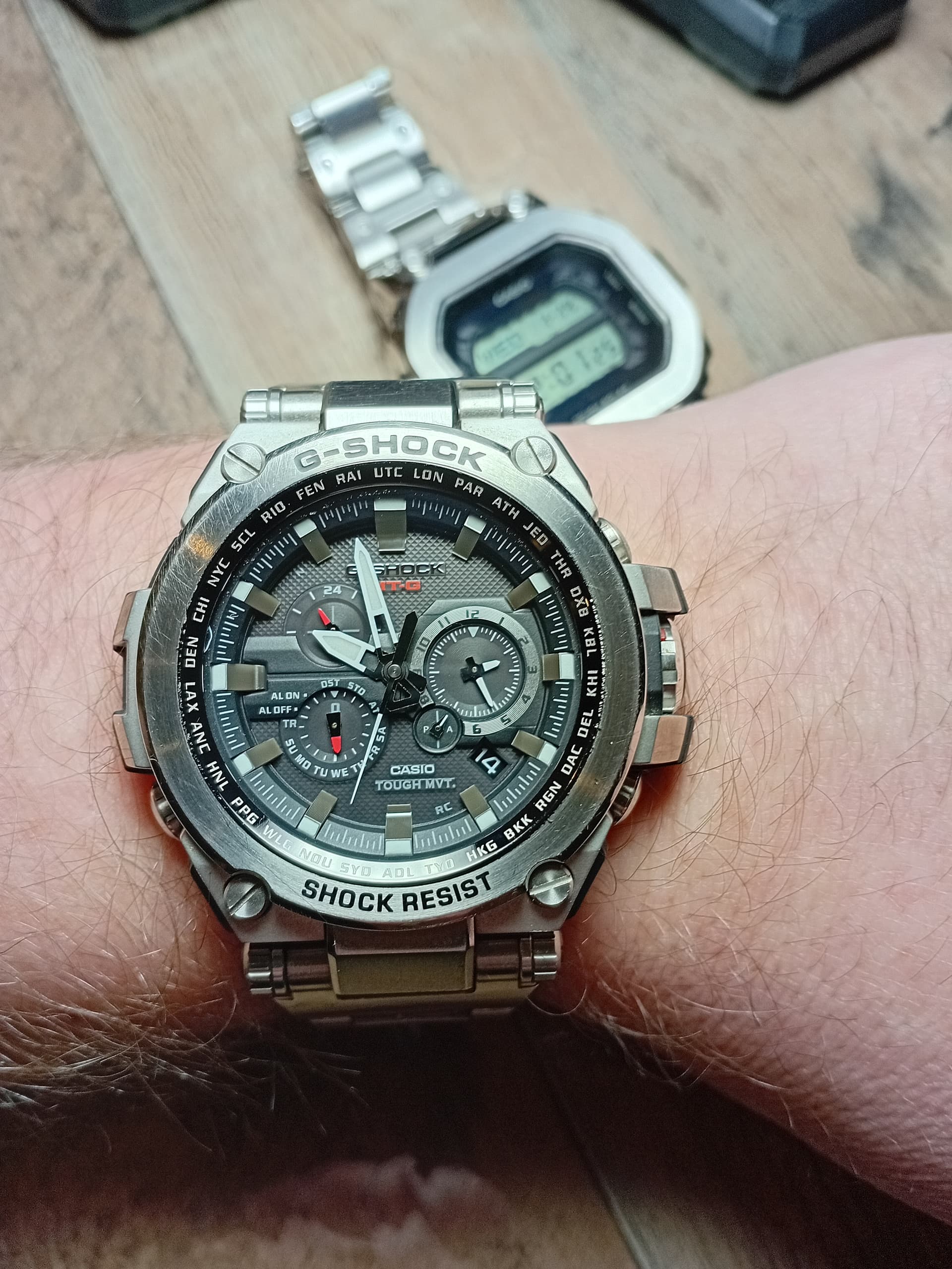 Misschien is het horloge te clean om dat gevoel te hebben. Maar desondanks kan hij nog wel aanvoelen als een g shock. Zwaar en degelijk? Het is dat hij veel te klein is, anders was dit een mooi alternatief voor een MTG!