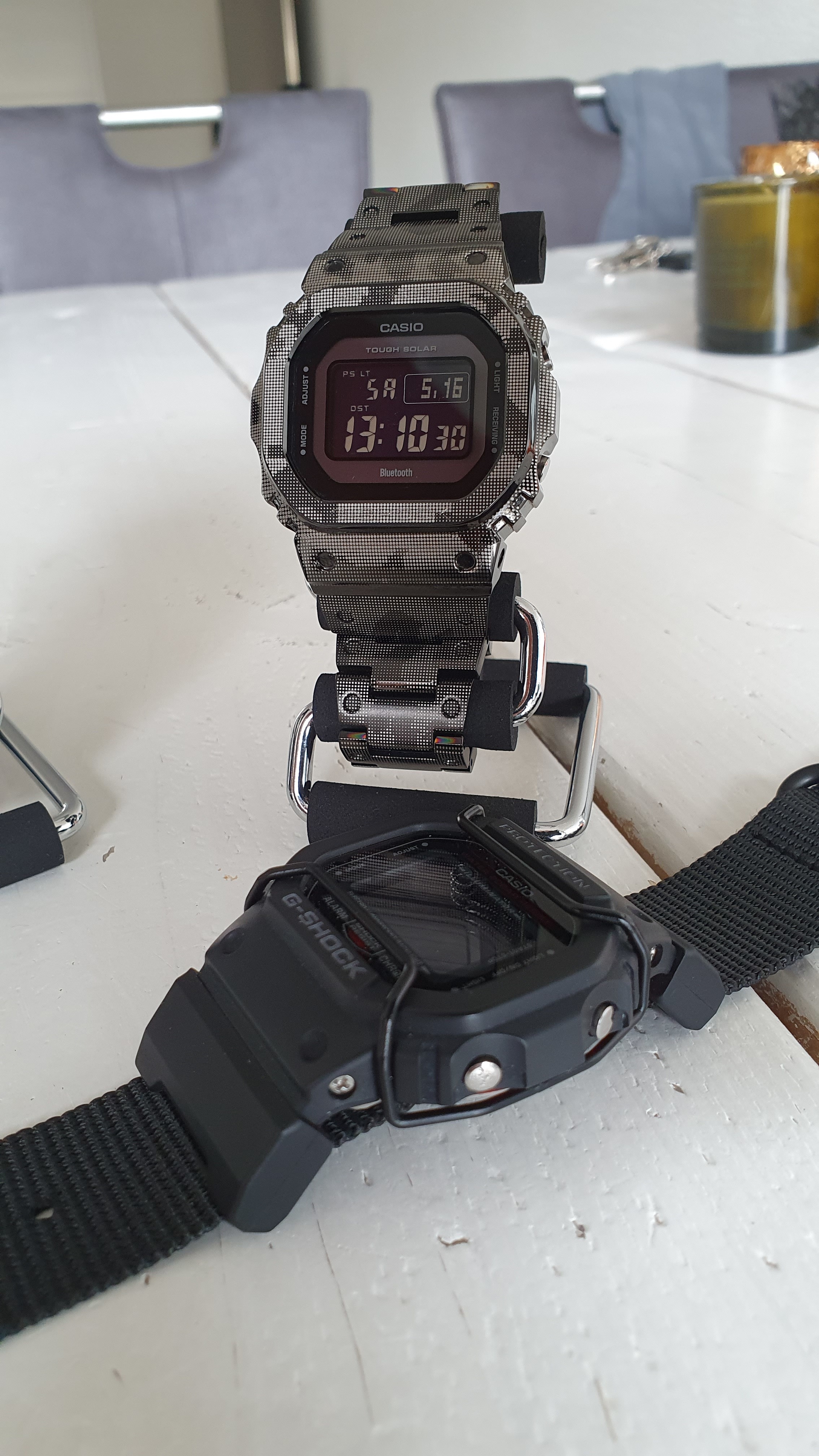 NA: een beetje een franken-G-Shock; DW-6630B dat ooit een paarse was, maar door de verkoper voorzien van een nieuwe bezel en oud bandje.