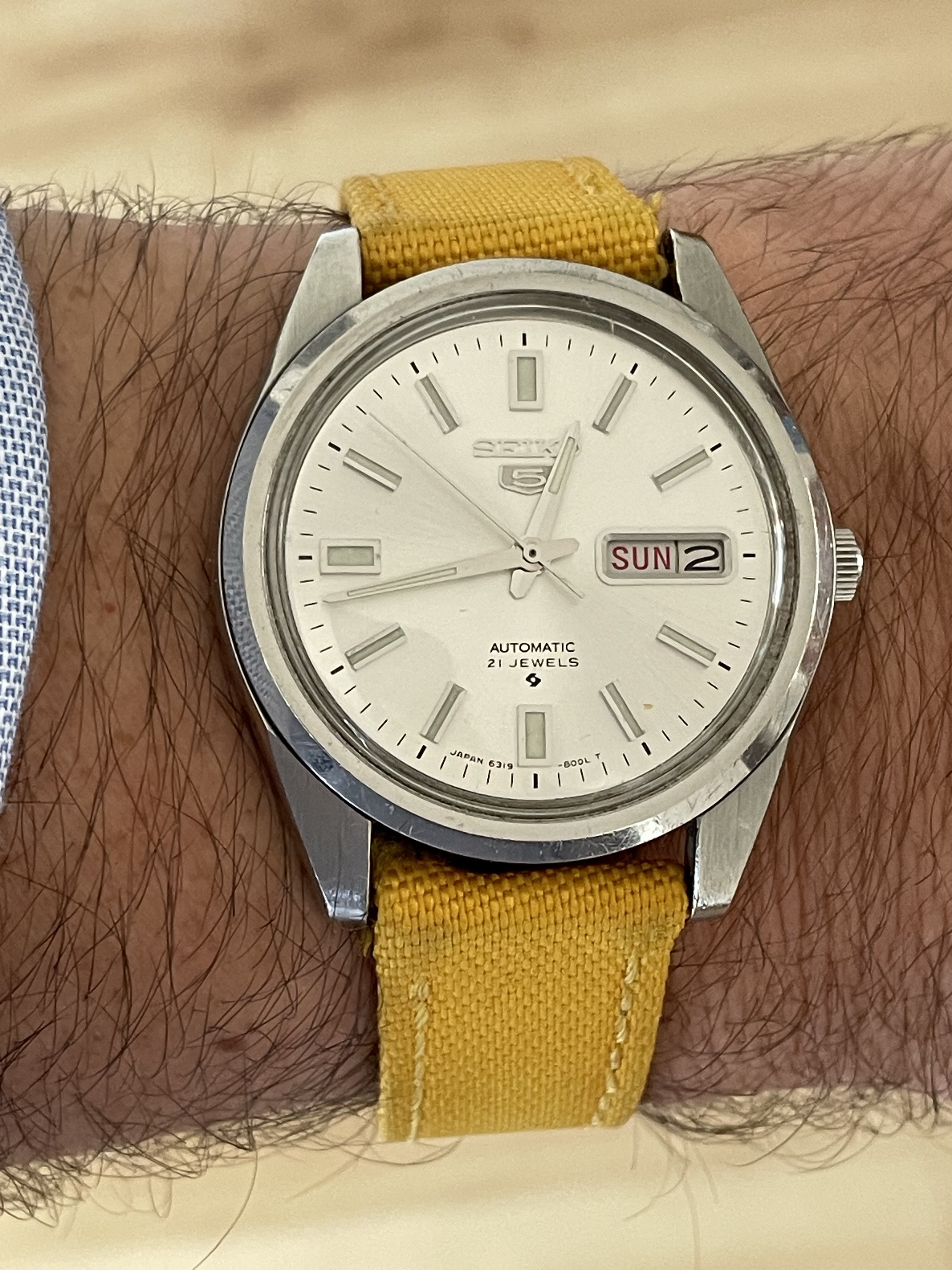 Terwijl ik in juli 1977 luiers bewerkte werd aan de andere kant van de wereld deze Seiko 5 geboren. Inmiddels hier en daar een kras en een buts, maar nog steeds volop shining, net als z’n drager. Show hier je geboortejaar horloge. Ik kon zo snel niet zien of er al een topic was. Zo ja, dan toch ![]()