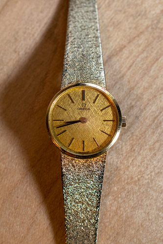 De Omega met steentjes en de Omega zonder aanduiding zouden massief goud kunnen zijn en daardoor nog een aardige waarde kunnen hebben. De andere twee gaan lastig worden vrees ik…