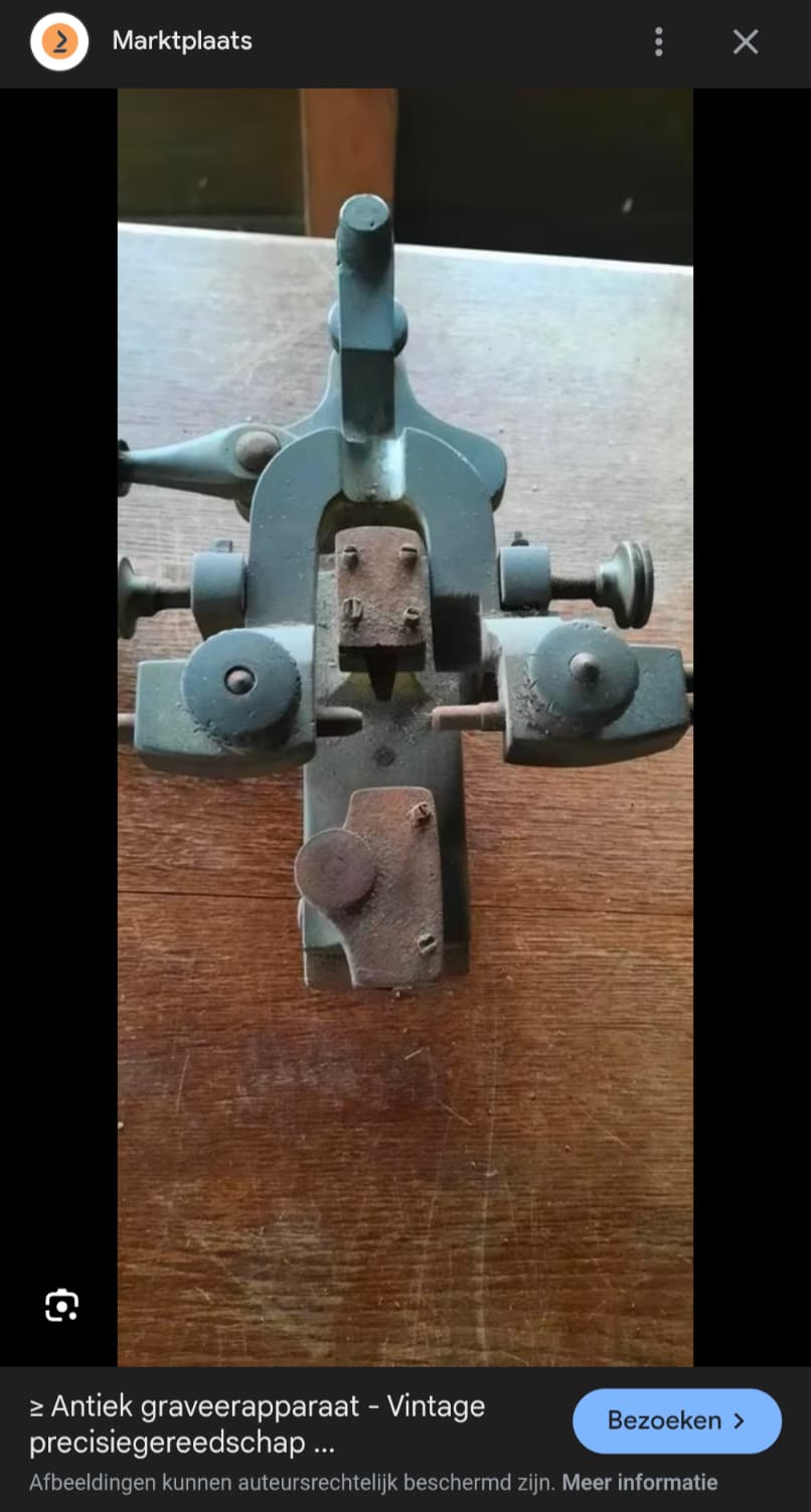 Op Marktplaats ooit verkocht als antiek graveeraparaat. Maar of dit klopt? Geen idee.