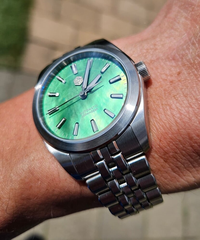 De kwaliteit is ontzettend hoog. De nieuwe stalen band draagt heel fijn en ziet er goed uit. De groene plaat is erg tof gedaan.