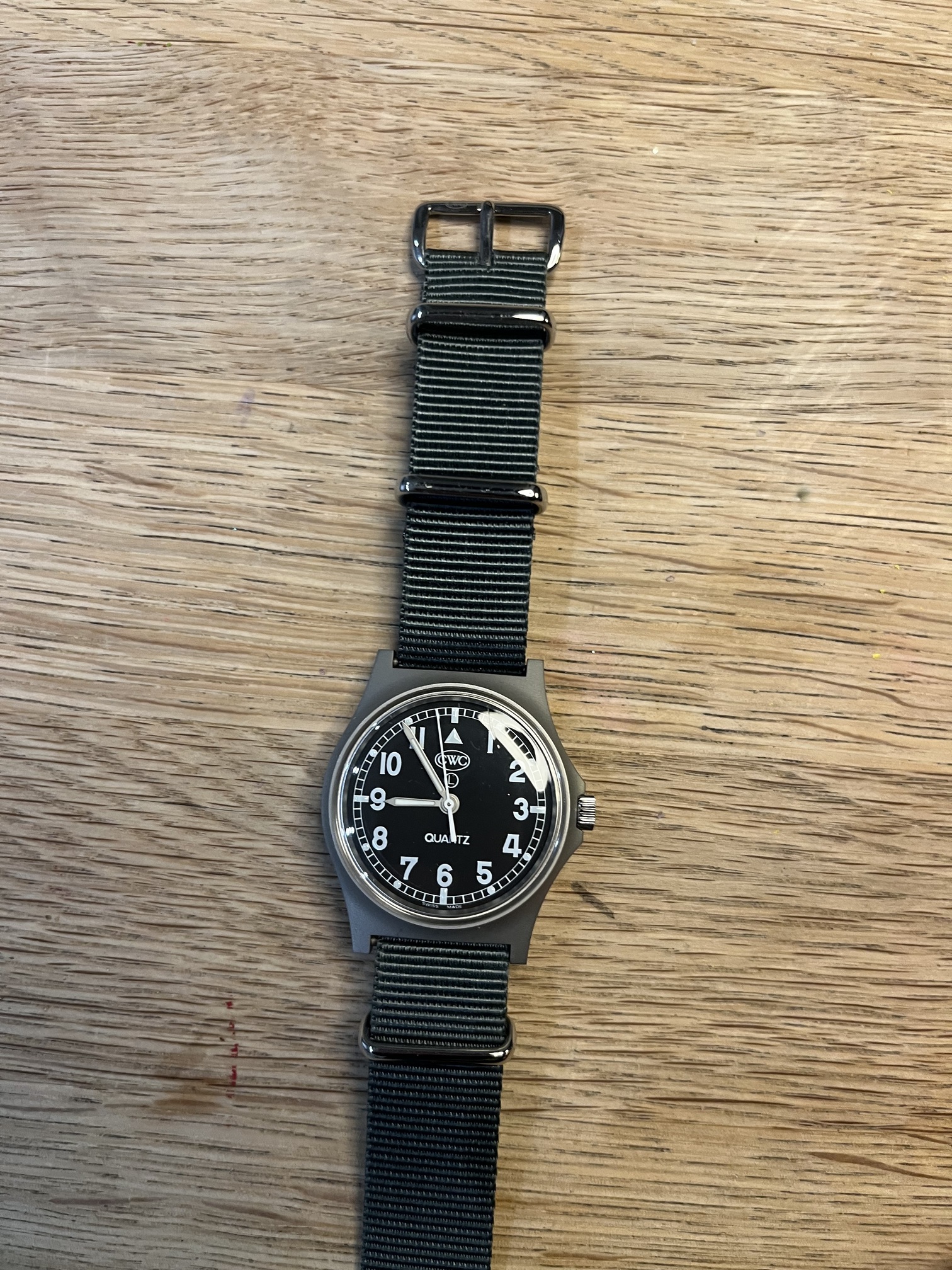 Conditie (krassen, werking etc): Oppervlakkig krasje kast links en oppervlakte krasje op het acryl bij de 1. Zie foto’s advertentie vorige eigenaar…https://www.horlogeforum.nl/t/cwc-g10-quartz/550158