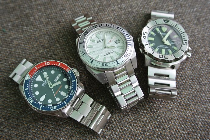 Vandaag mijn drie Seiko duikers maar eens samen op de gevoelige plaat vastgelegd.