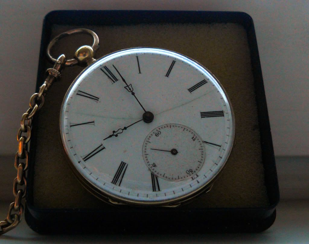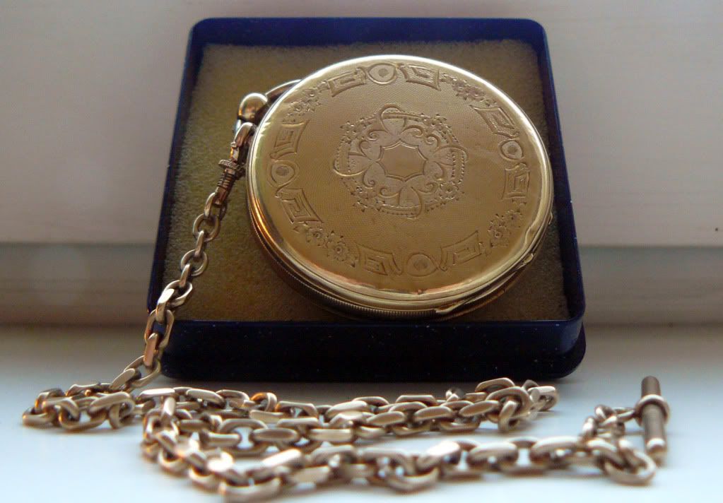 Ik vond vandaag het zakhorloge terug dat ik zo’n 20 jaar geleden kreeg van mijn opa. Even opwinden en loopt nog steeds. Ik ben meteen aan het speuren geslagen op het web naar meer informatie. Wat betreft de waarde lijkt het er op dat die meer in de huidige goudprijs zit dan in de ouderdom, jammer maar helaas Maar dat is niet alles waarin ik geïnteresseerd ben, ik ben ook erg benieuwd naar de ouderdom, plaats, maker, betekenis van alle inscripties, dat soort zaken.