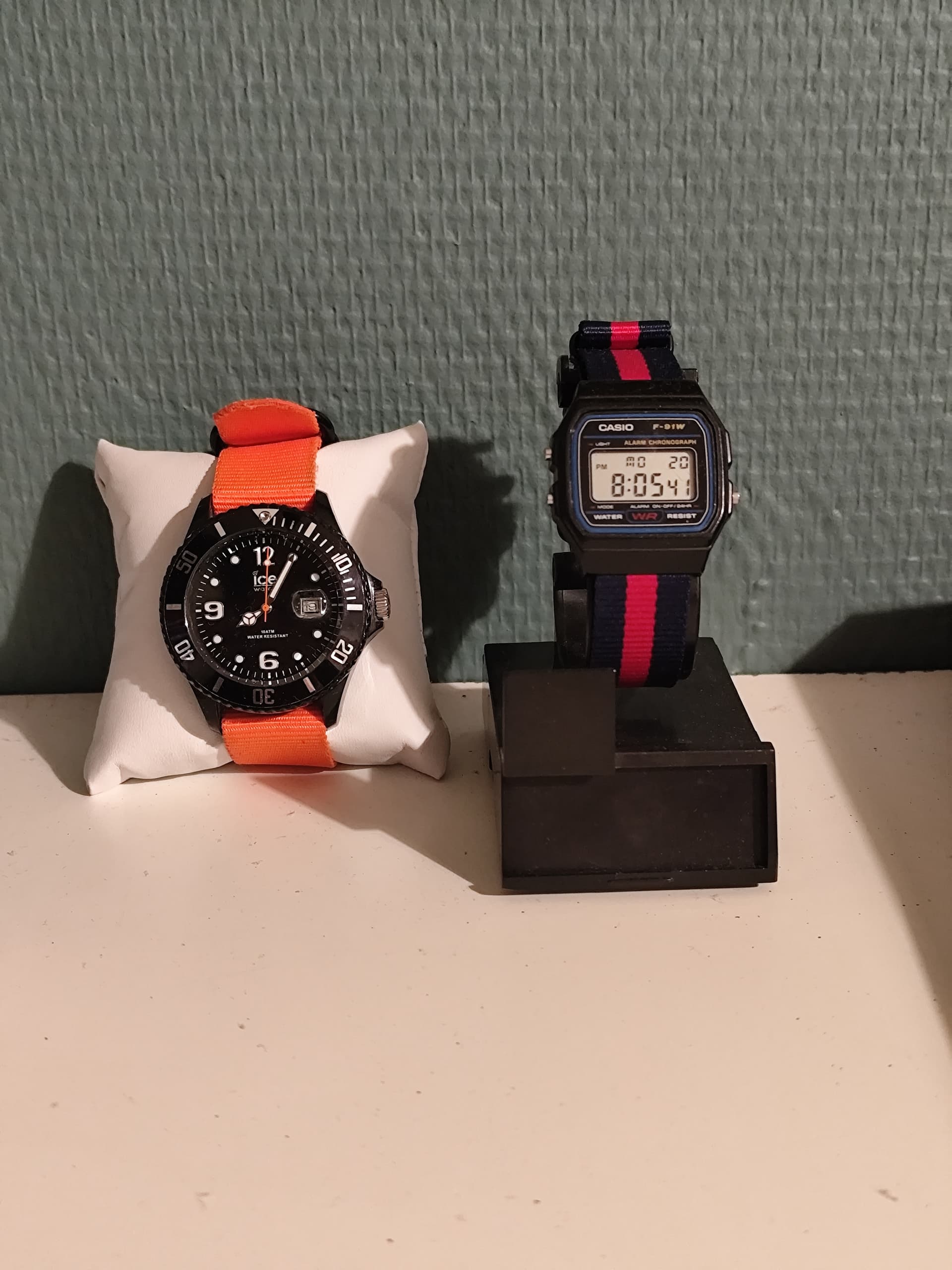 Mijn zoon is even oud en heeft al jaren een Casio F-91W en sinds januari een 2e hands Ice Watch. Bandjes wisselen kan ook daarop. Hier is hij heel trots en zuinig op.