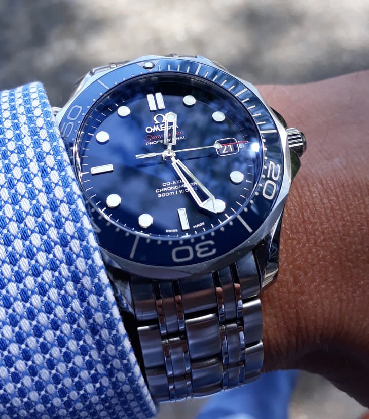 Dus: Een blauwe Seamaster 300m met de golfjes op de plaat.