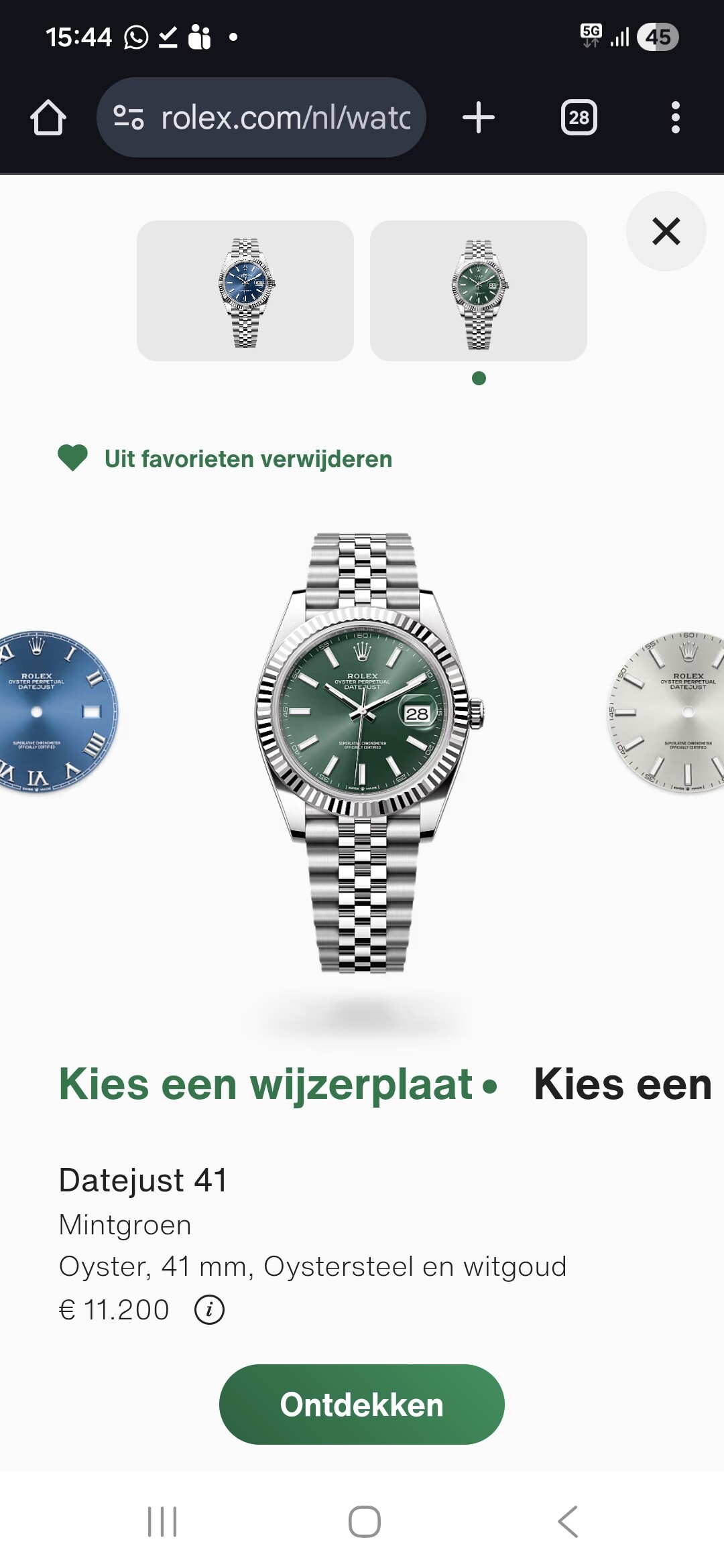 Rolex datejust 41mm gezocht met wijzerplaat azuurblauw, helder blauw of mint groen.