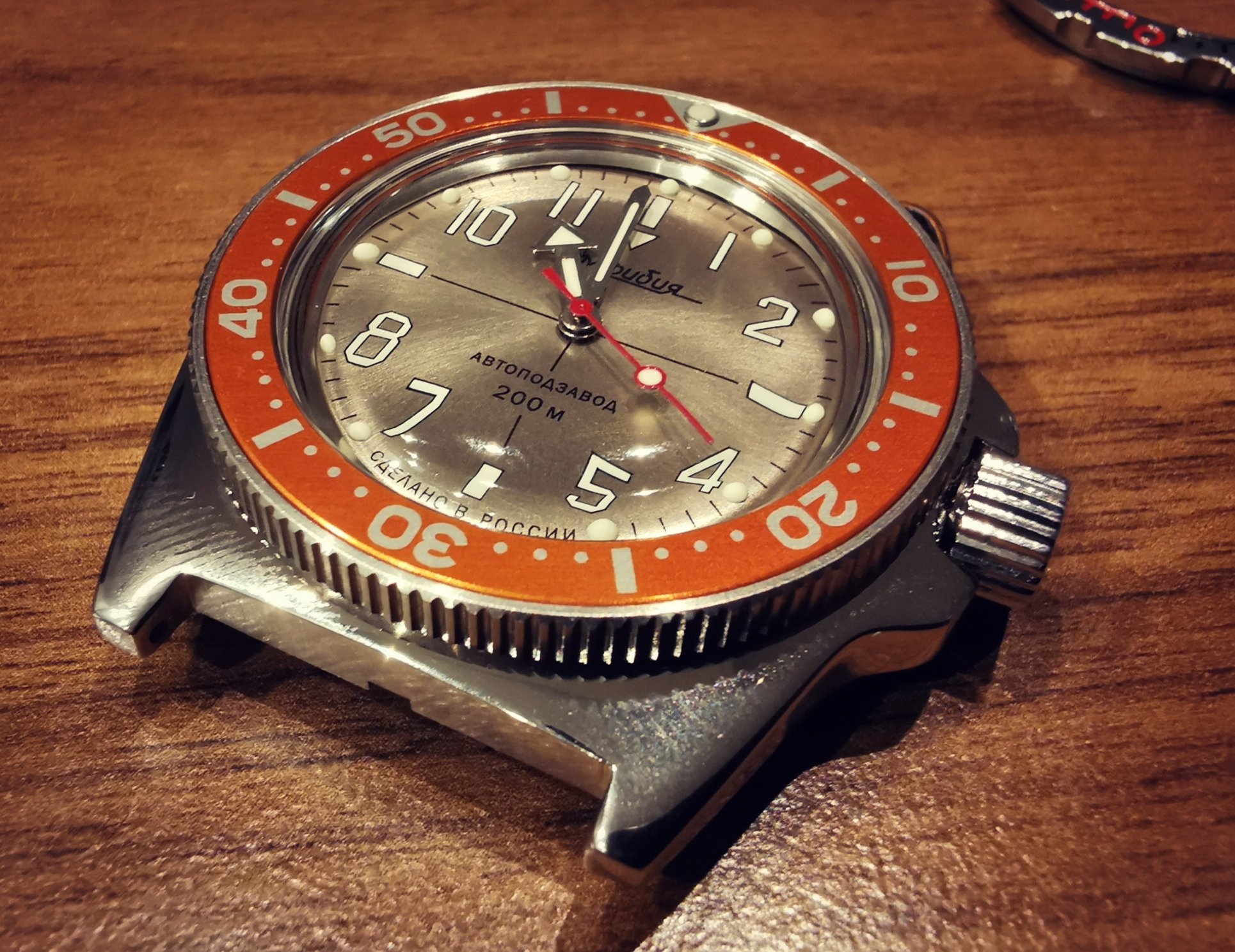 Eigenlijk vind ik de Vostok horloges niet heel erg mooi maar ik vind het een tof idee dat je ze met enkele vrij simpele ingrepen best een leuke smoel kunt geven. Het scheelt ook nog eens dat een gemiddelde Vostok voor drie tot vijf tientjes te vinden is.