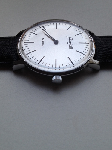 Glashütte Original is hoogwaardig merk, GUB’s waren horloges voor het proletariaat. Door een mix van Ostalgie & de status van Glashütte Original zijn die GUB’s tegenwoordig zo prijzig. Dat je Glashütte Originals voor overdreven prijzen over de toonbank ziet gaan, die conclusie, kan ik niet delen.