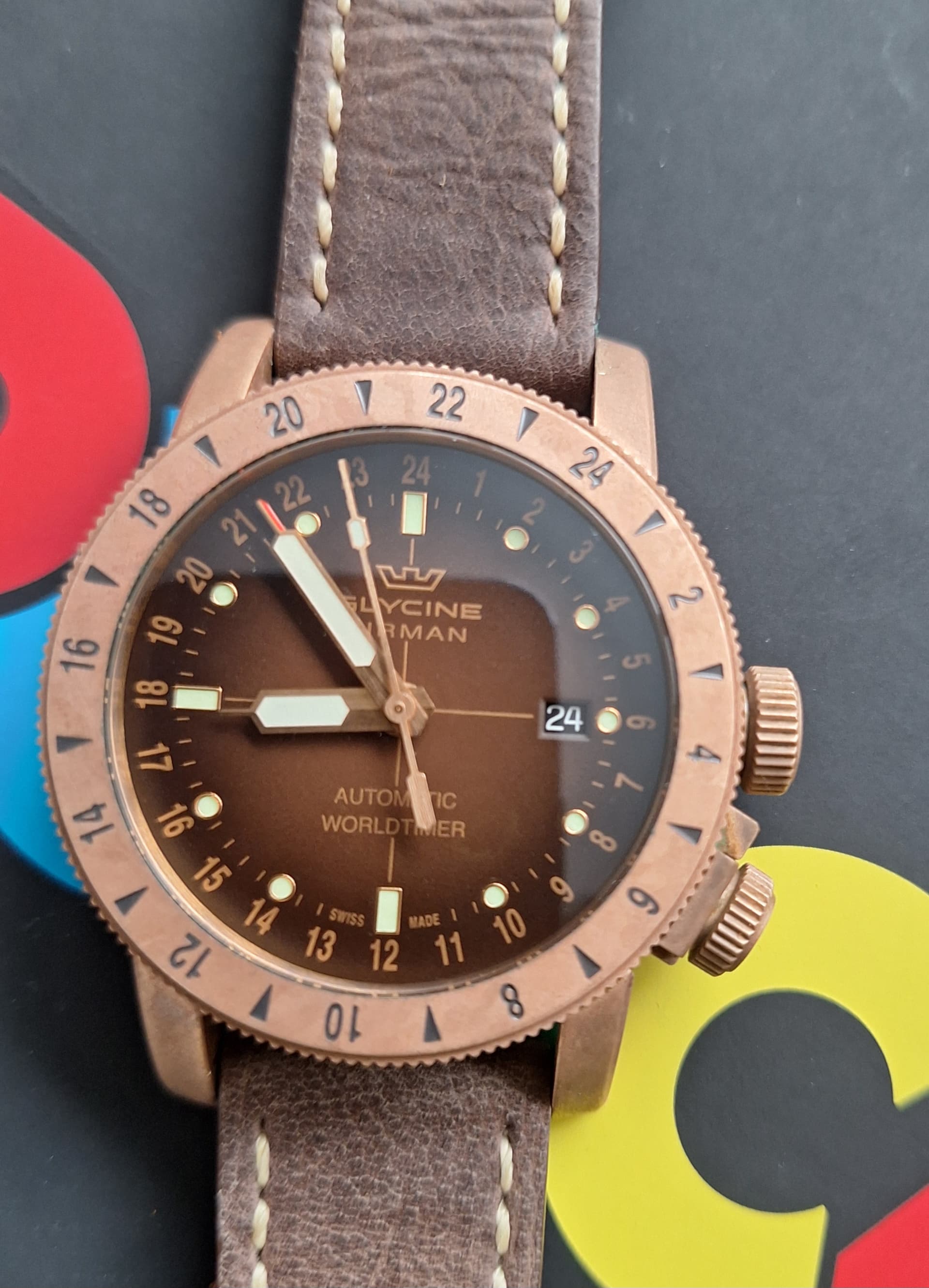 Conditie : de GMT wijzer loopt iets uit de maat. Veder is het hotloge in goede staat. Bandjes zijn ongebruikt.