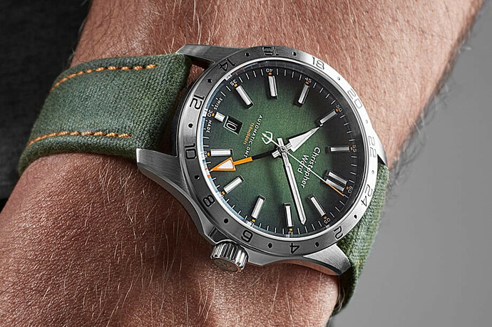 2.Christian Ward Sealander C63 GMT groen. Goede verhalen, maar twijfel een beetje over de dial. De kleur is perfect, maar het krassende motief lijkt me op het eerste oog niet heel mooi.