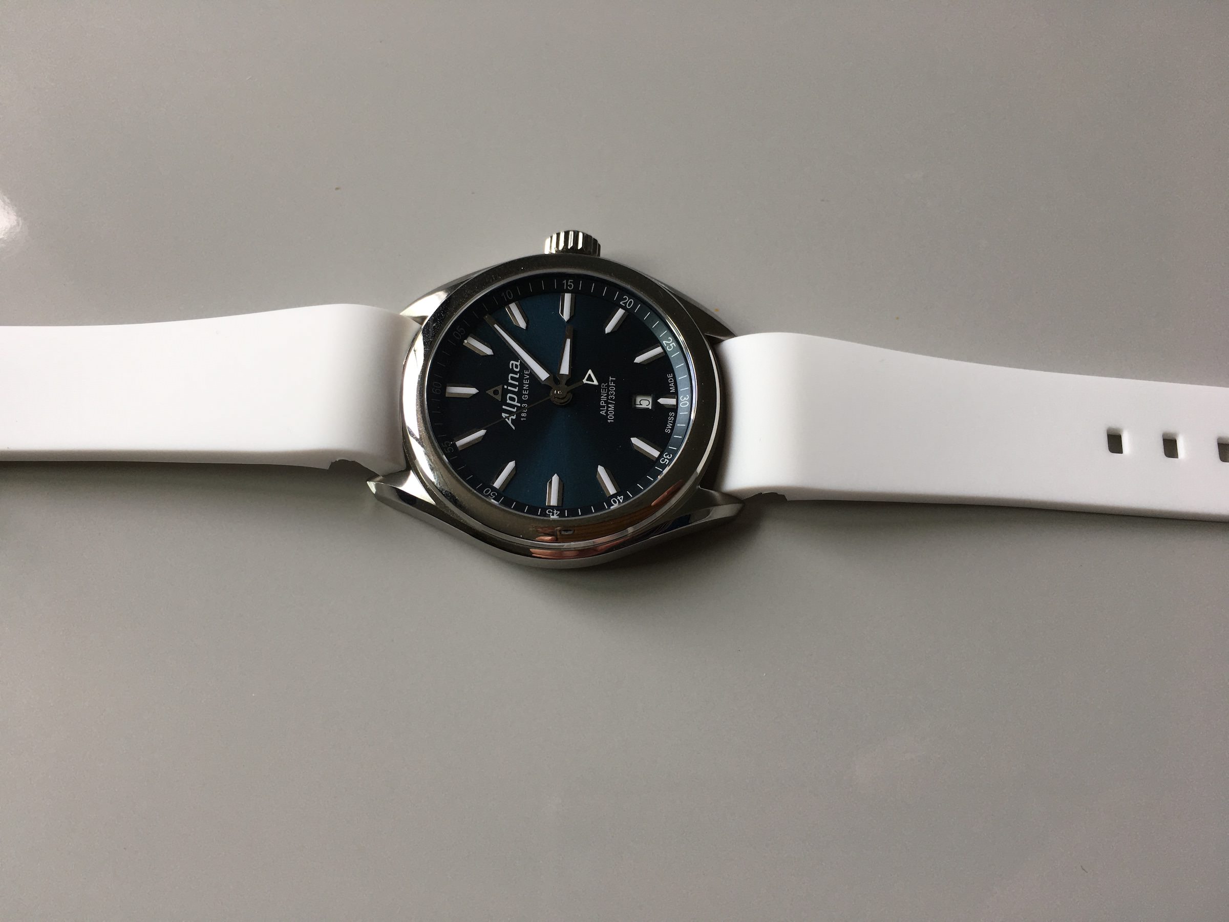 Wat passing heeft het wel een horloge met wat grotere lugs nodig, ik had een 21mm witte voor de Alpiner besteld maar die gaat dus niet passen helaas. Misschien nog eens proberen, montage van deze bandjes is wel iets moeilijker in vergelijk met normale rechte banden.