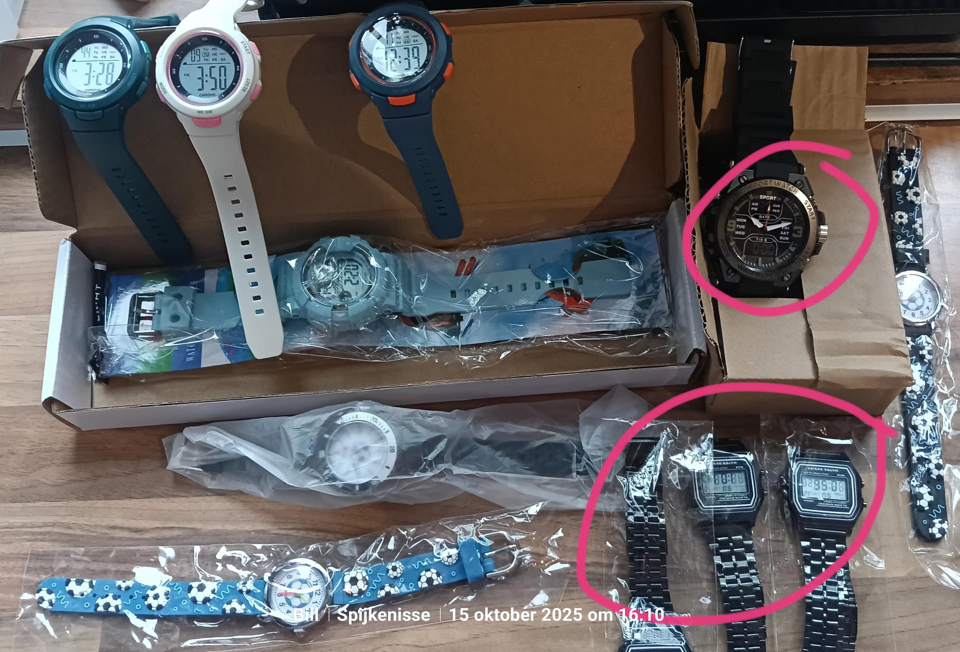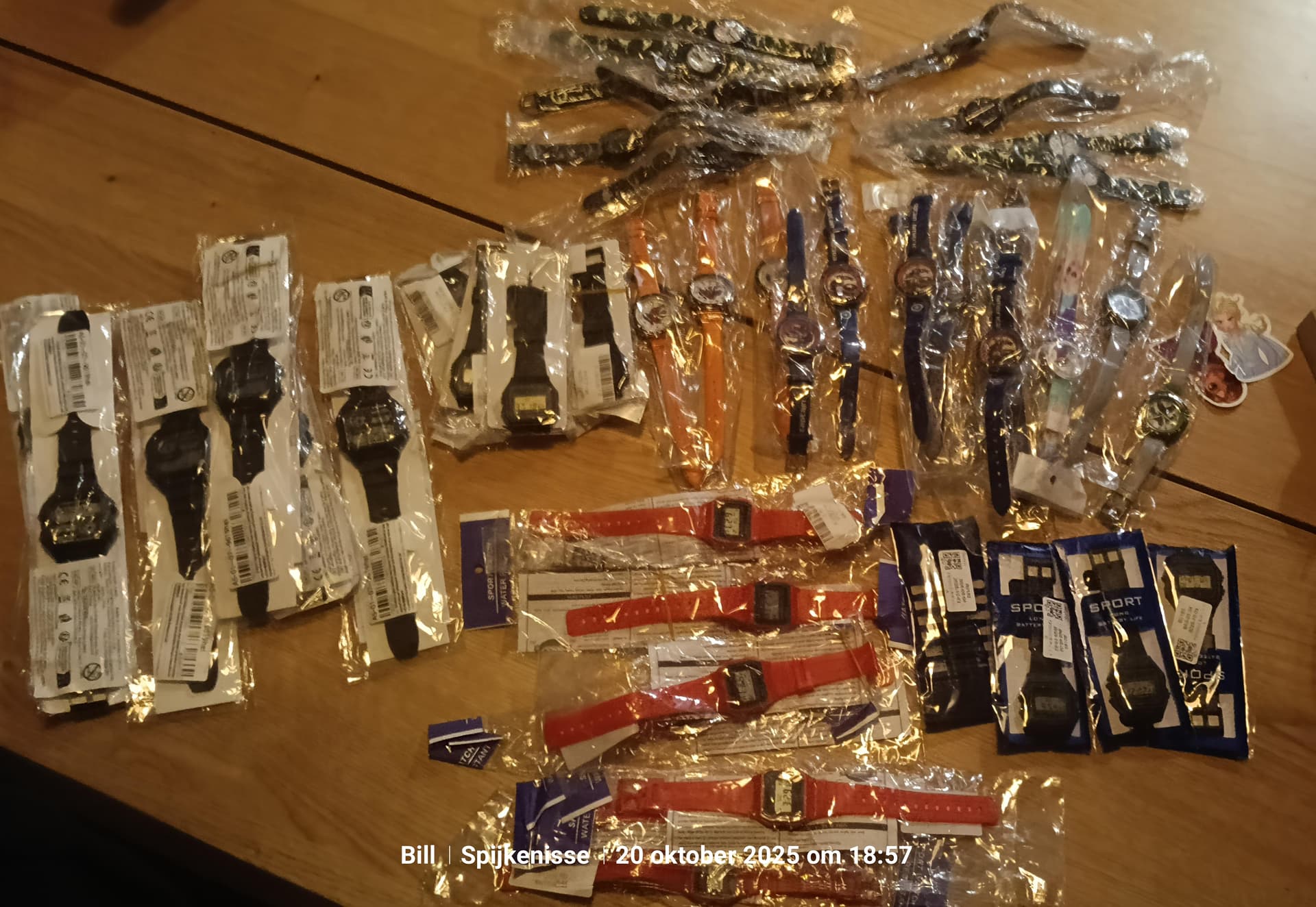 Meer horloges nodig hebben. Dus dan praten we over casio achtige modellen. Maar dan ook volwassen vrouwen modellen. Ik zit nu aan 8 stuks voor bijvoorbeeld voor de sinterklaas bingo. Wat nog gaver zou zijn is als ik dit kan verhogen naar een hoger aantal. Misschien kunnen jullie nog iets verder graven in jullie voorraden of anderszins?
