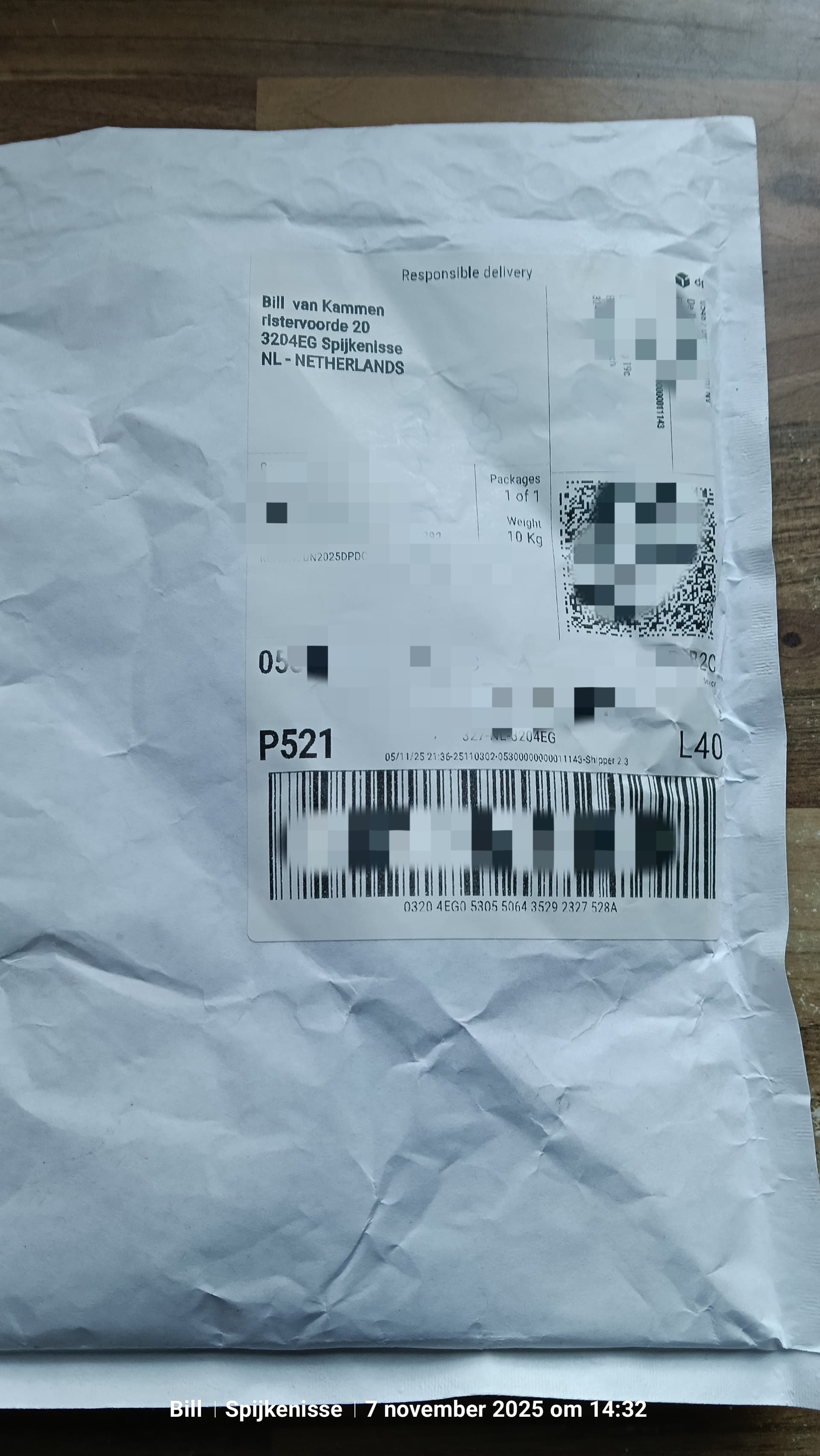 Werkelijk geen idee van wie. Geen afzender.