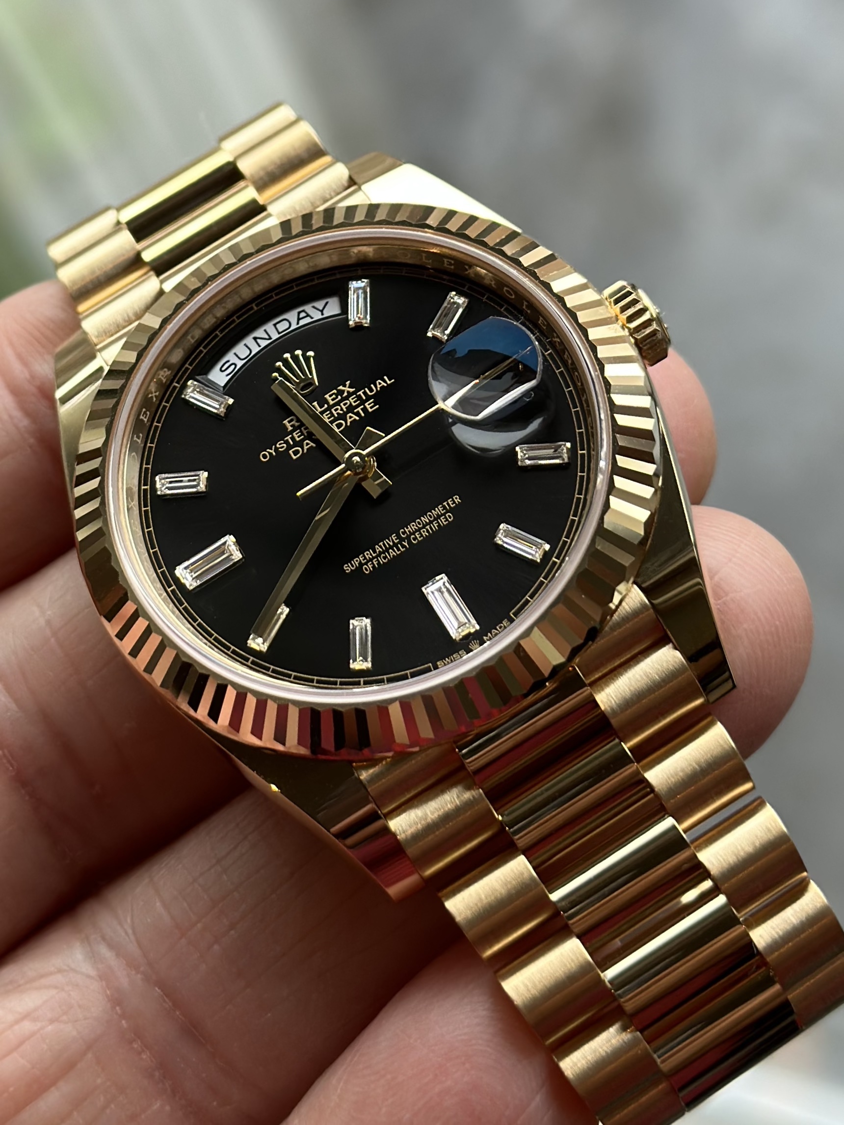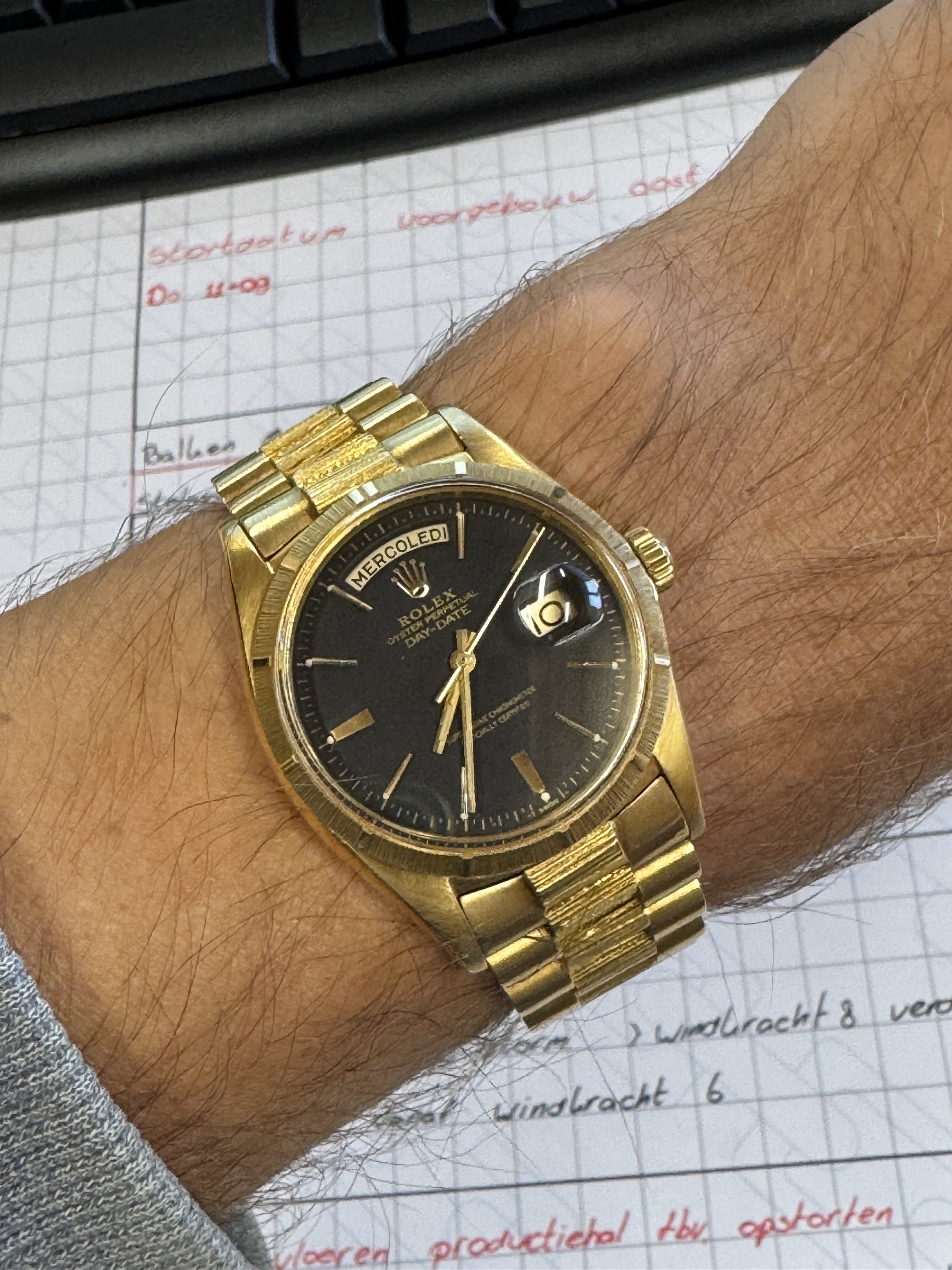 Je gouden day date is echt mijn favoriete Rolex, ik kijk uit naar het moment waarop ik hem aanschaf. Nog geen concrete plannen overigens. Geniet er van, chique, stoer en tijdloos!