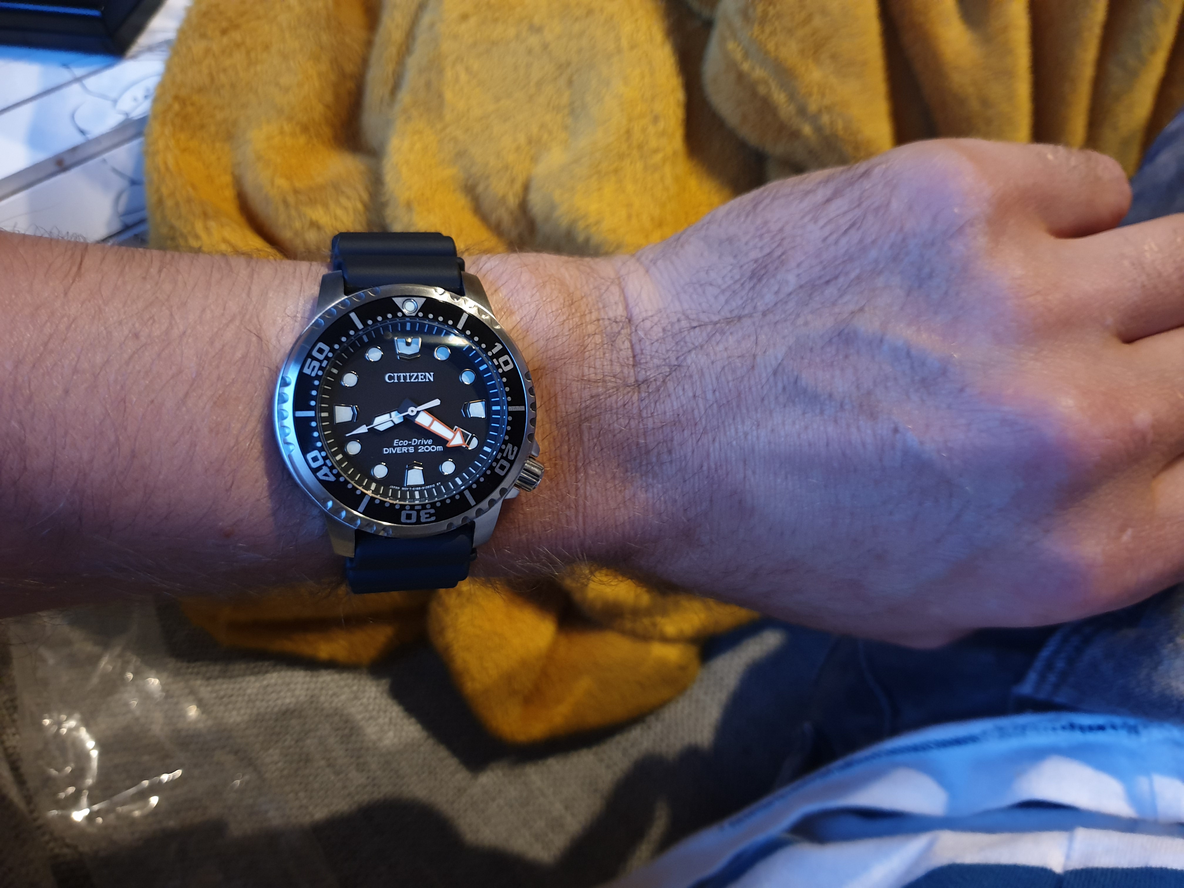 Betreft modellen, met jouw pols omvang zou ik eerder voor een wat groter horloge model gaan. Bv n Citizen Ecozilla, of wat beschaafder en retro n Seiko Turtle.