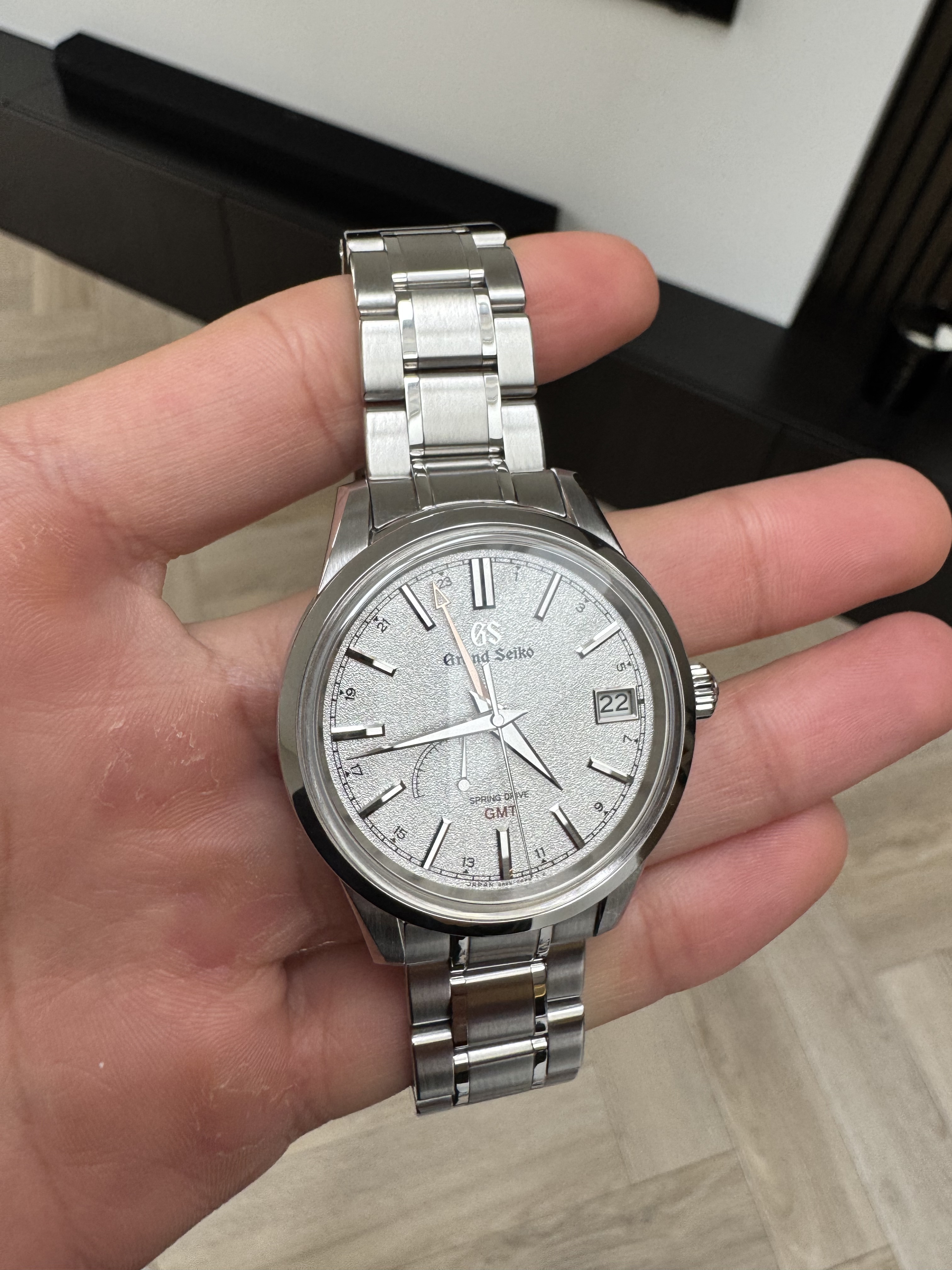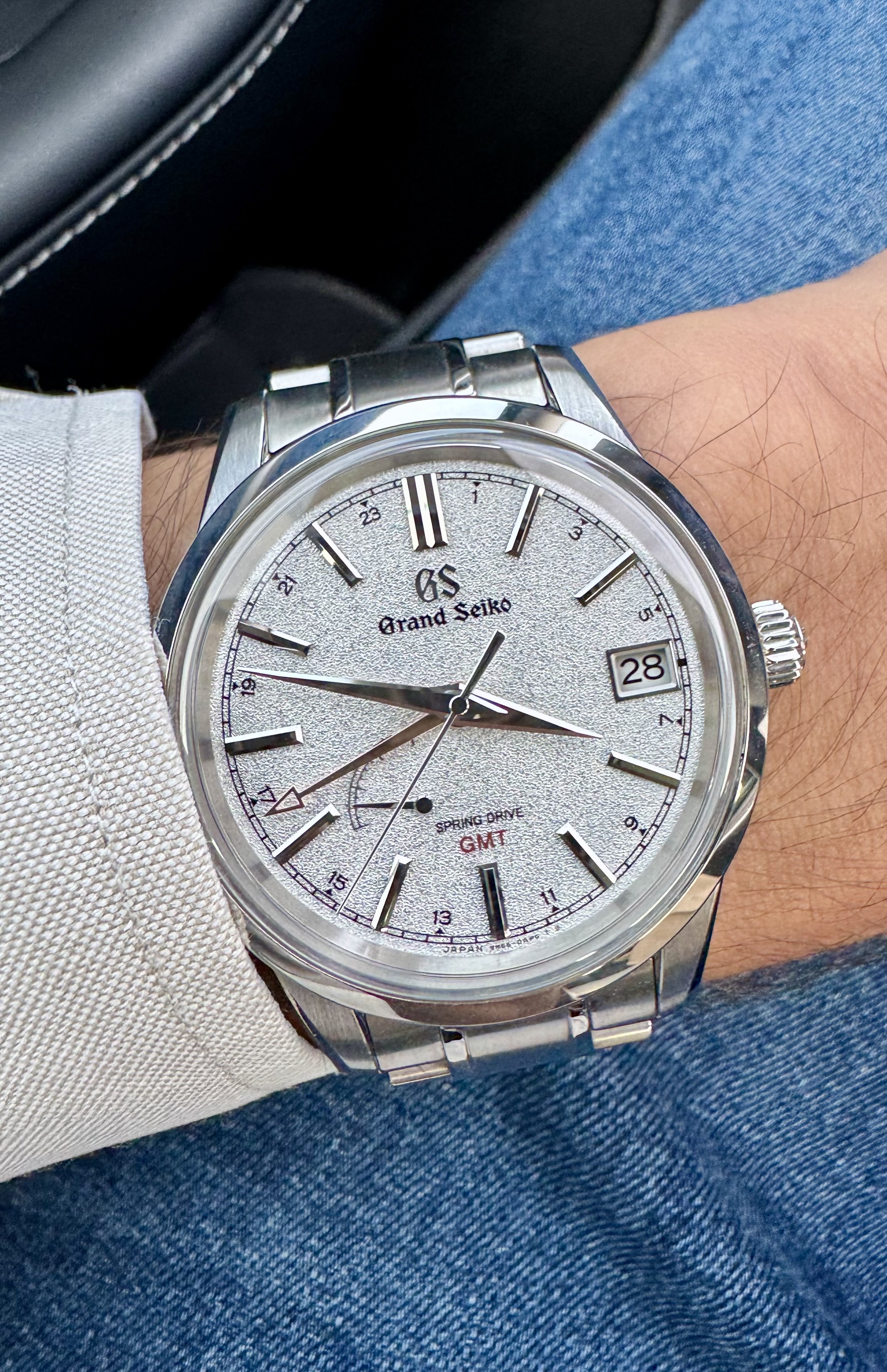 Deze Grand Seiko SBGE269G, ook wel “Toji” genoemd, is geïnspireerd op de Japanse winter. De wijzerplaat heeft die typische, rustige winterstructuur: helder, ijzig wit met veel diepte, die in verschillend licht steeds net anders oogt. In combinatie met de scherpe GS-afwerking en de blauwe GMT-wijzer blijft het een horloge waar je naar blijft kijken, zonder schreeuwerig te worden.