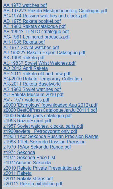 Een geweldige link voor diegene die de oude SSSR en nieuwere russische horloges graag zien: allemaal catalogi!