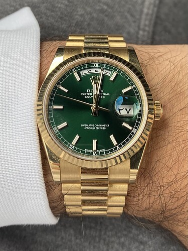 Zelf zou ik nog wel oren hebben naar een Rolex day date met donker groene plaat of een IWC met groene dial…