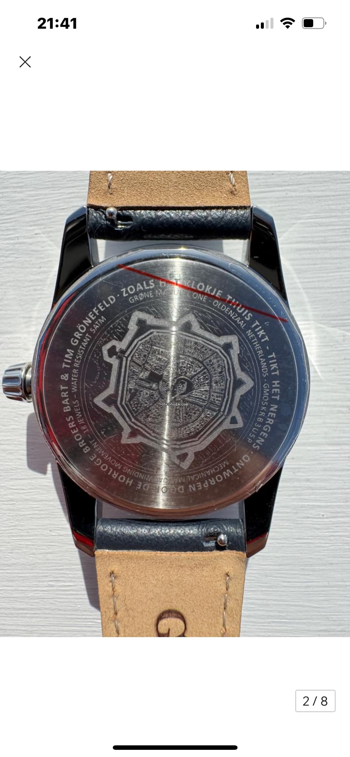 Te koop Full set van ongedragen Sjef One van Grøne. Het horloge is in beperkte oplage (388) gemaakt als eerbetoon aan hun vader. Ik heb er alleen geen klik mee en daarom mag die weg.
