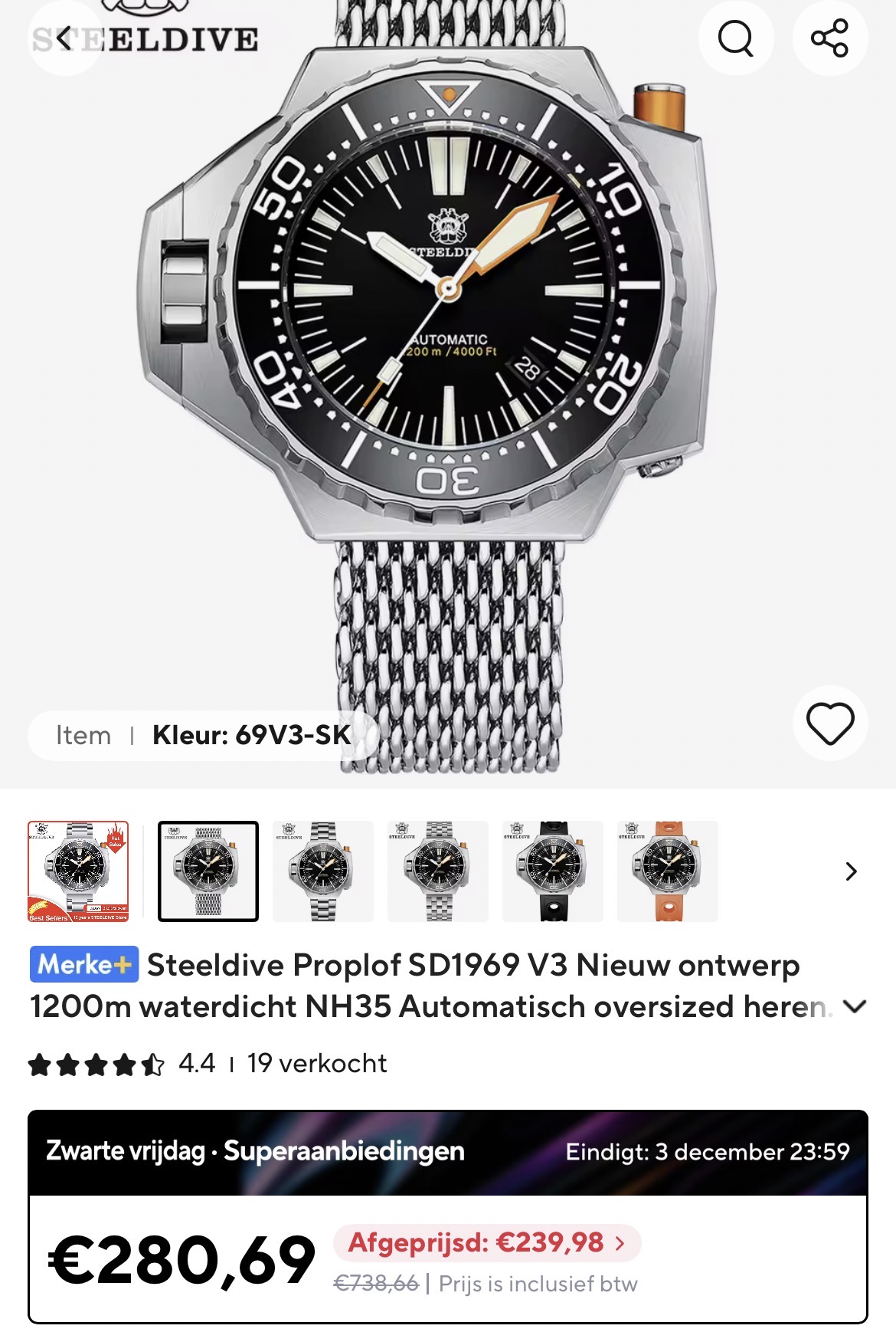 €719,45 | Steeldive Proplof SD1969 V3 Nieuw ontwerp 1200m waterdicht NH35 Automatisch oversized herenduikhorloge