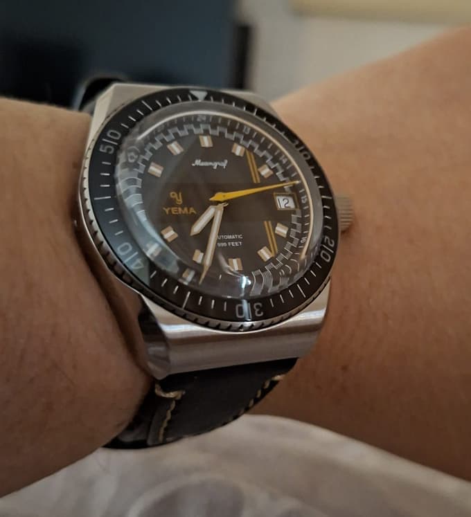 Je weet maar nooit dat iemand eentje liggen heeft en niet draagt. Hier zou ie ongelofelijk veel draagtijd krijgen, de Yema Y60 die ik overnam van @Ipa1968 is nl. nog niet van de pols af geweest