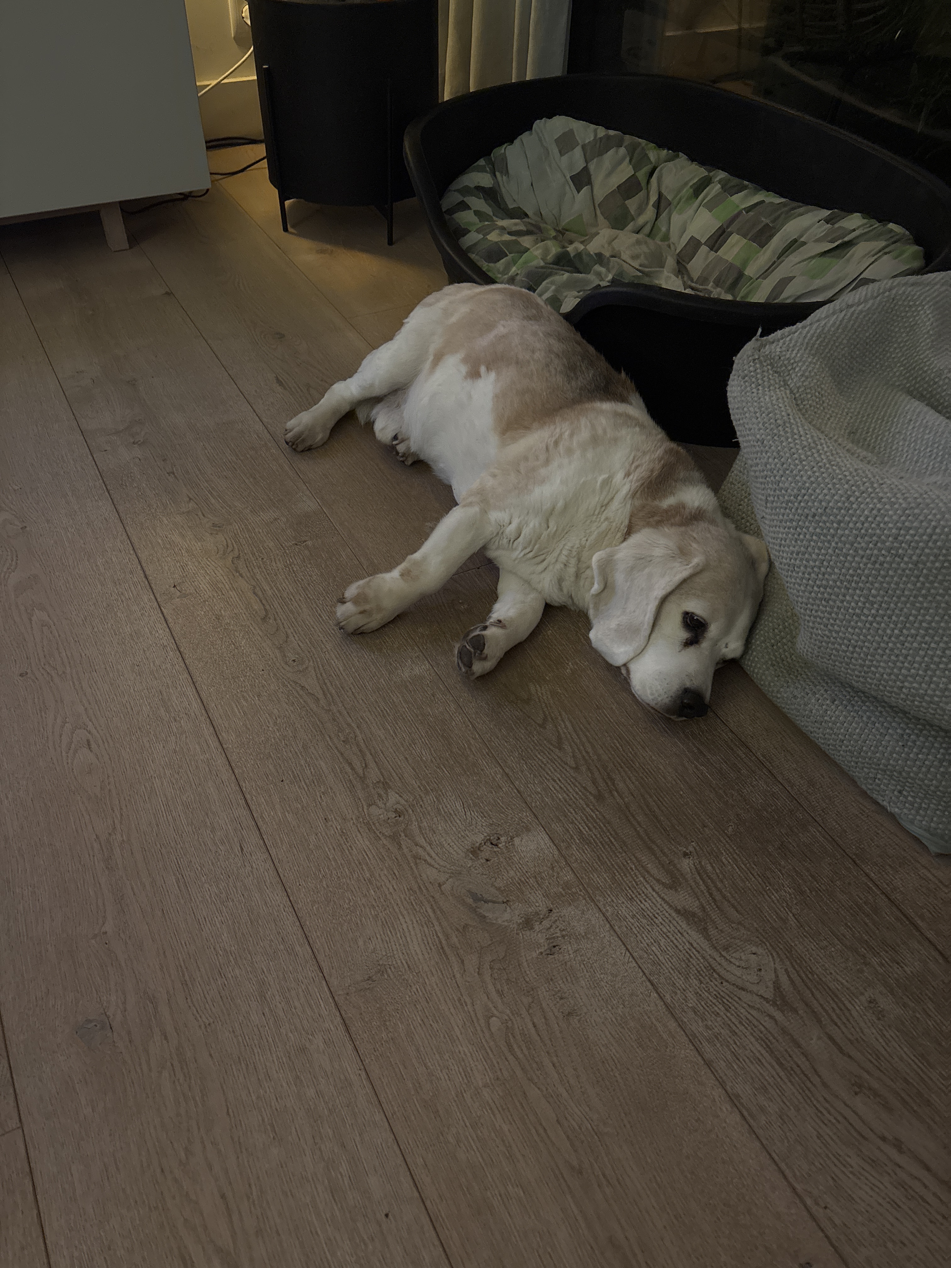 Moeten we hem wel een beetje helpen want zijn rikketik kan nog 5 jaar mee. Zijn heupen en hersenen echter……