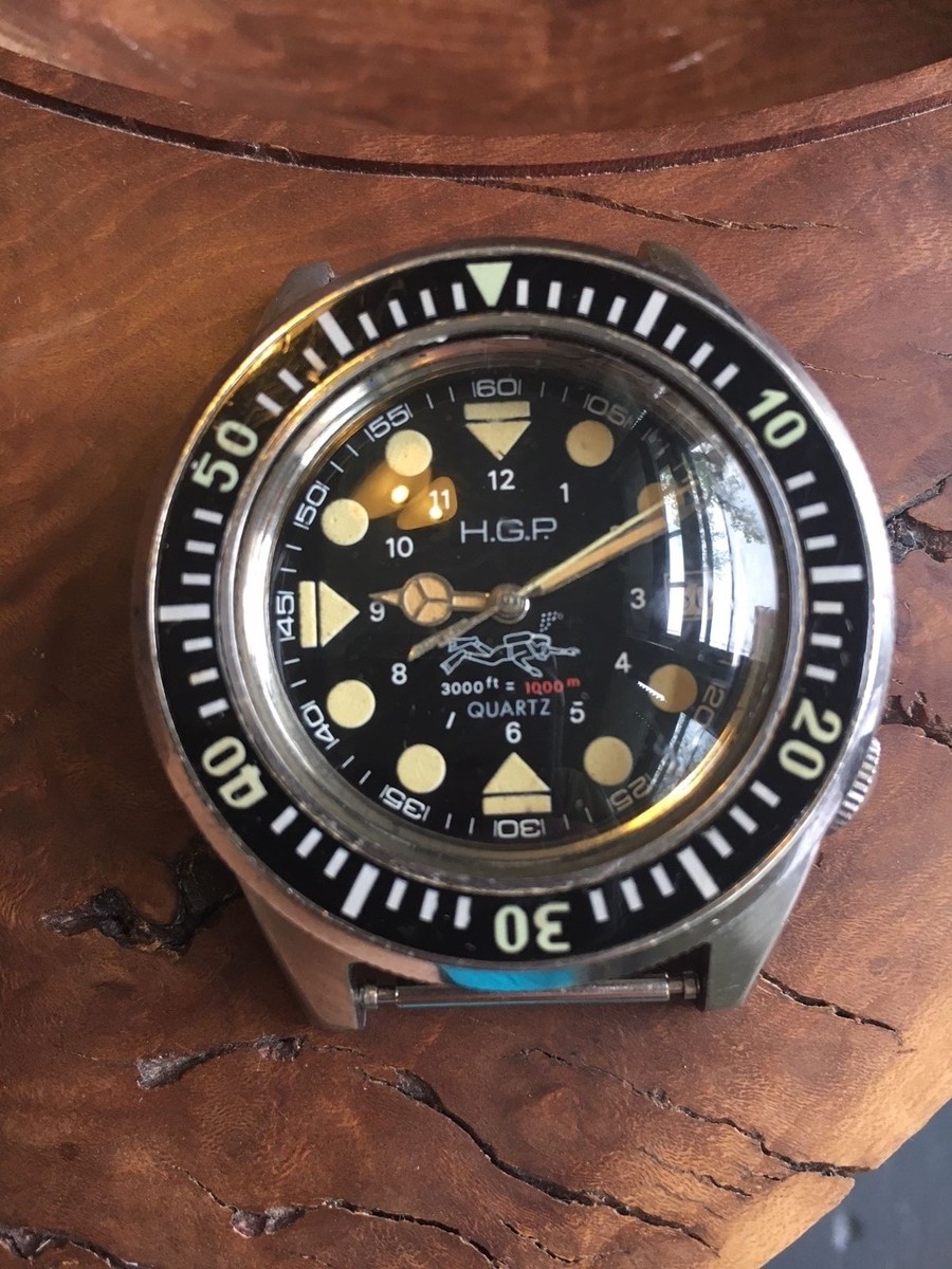 Onderstaande foto’s, vintage HGP, met MRPSa(?) kast, dial lijkt verrassend veel op de teaser….