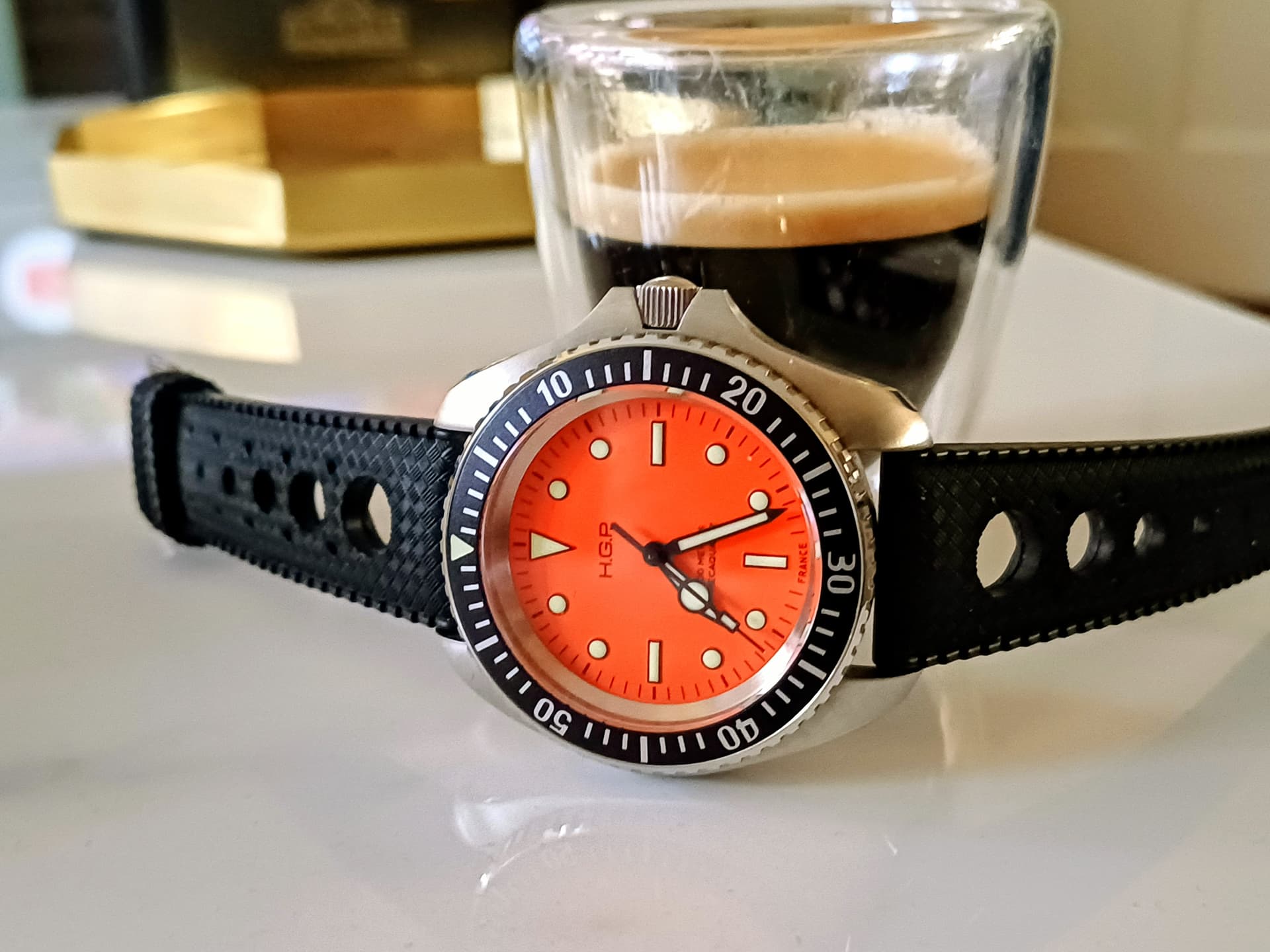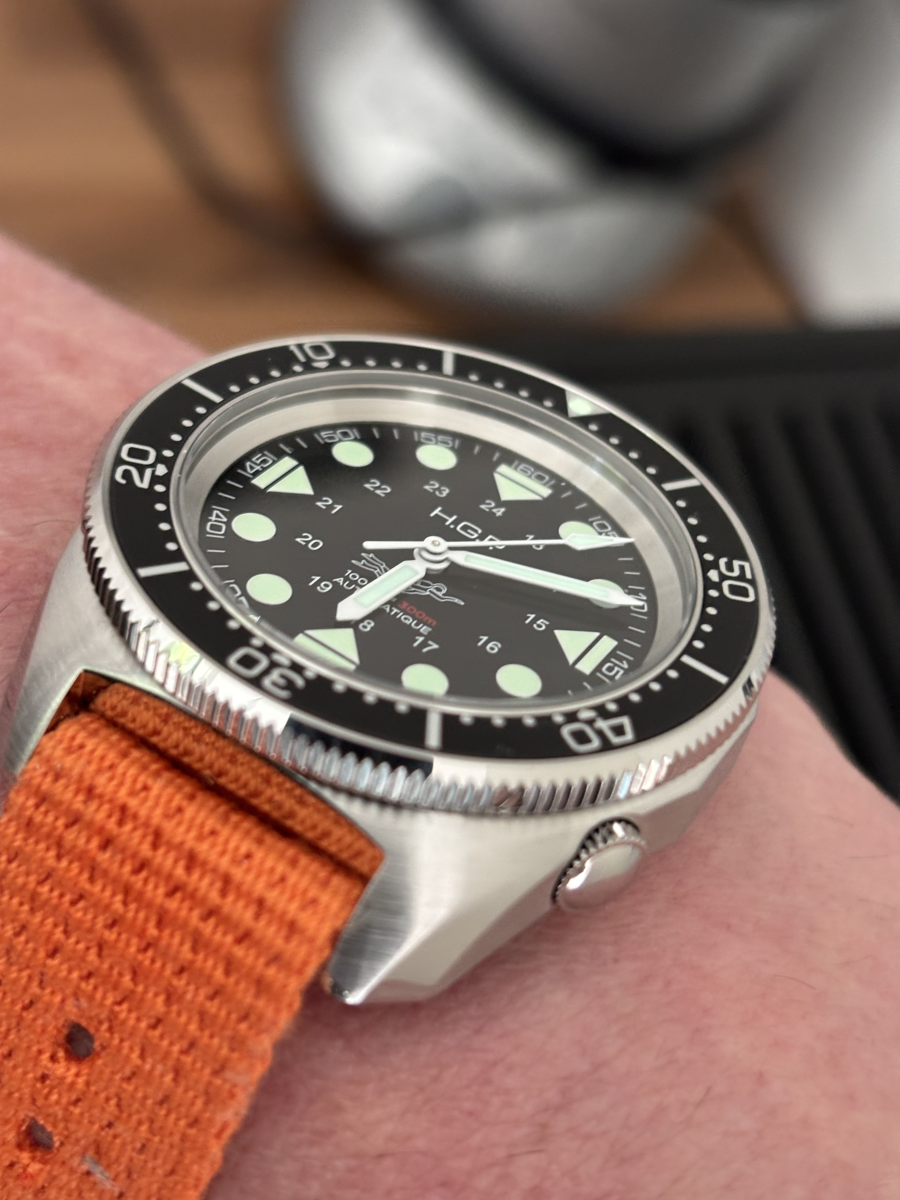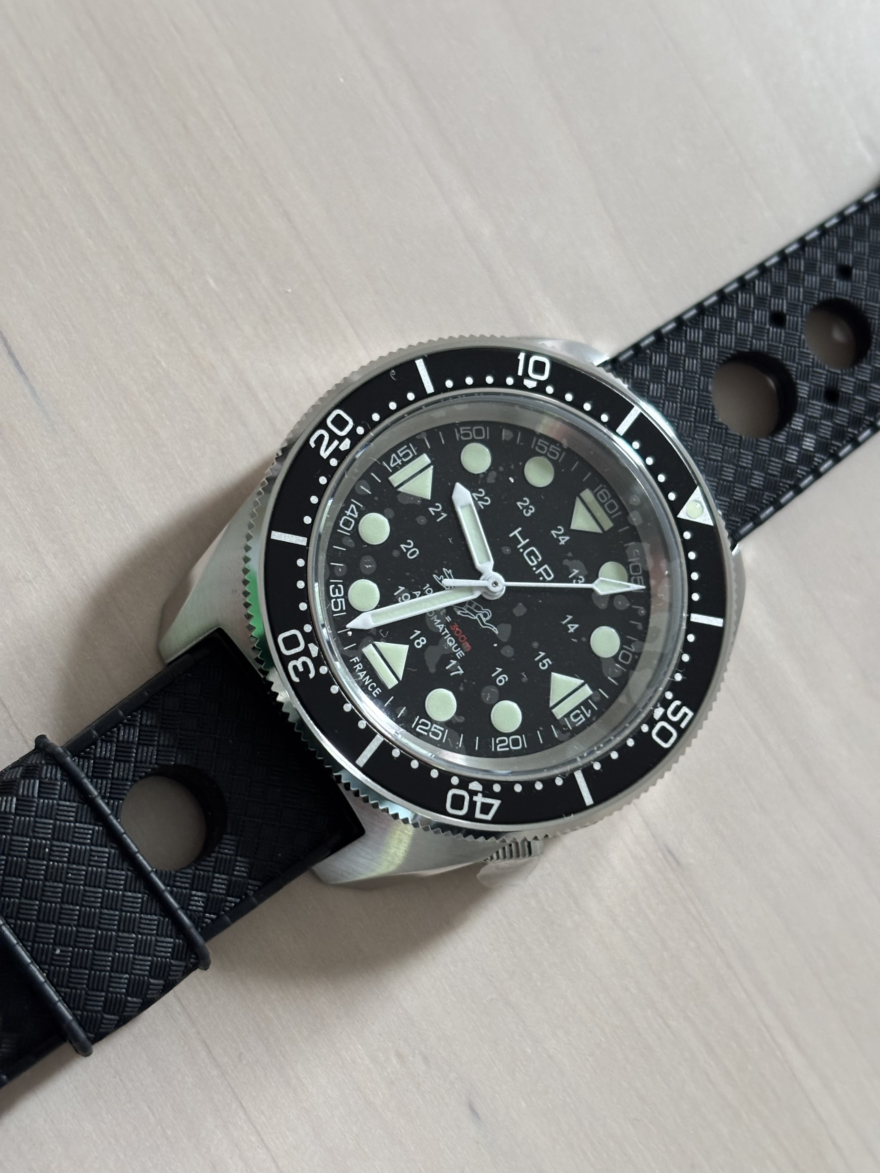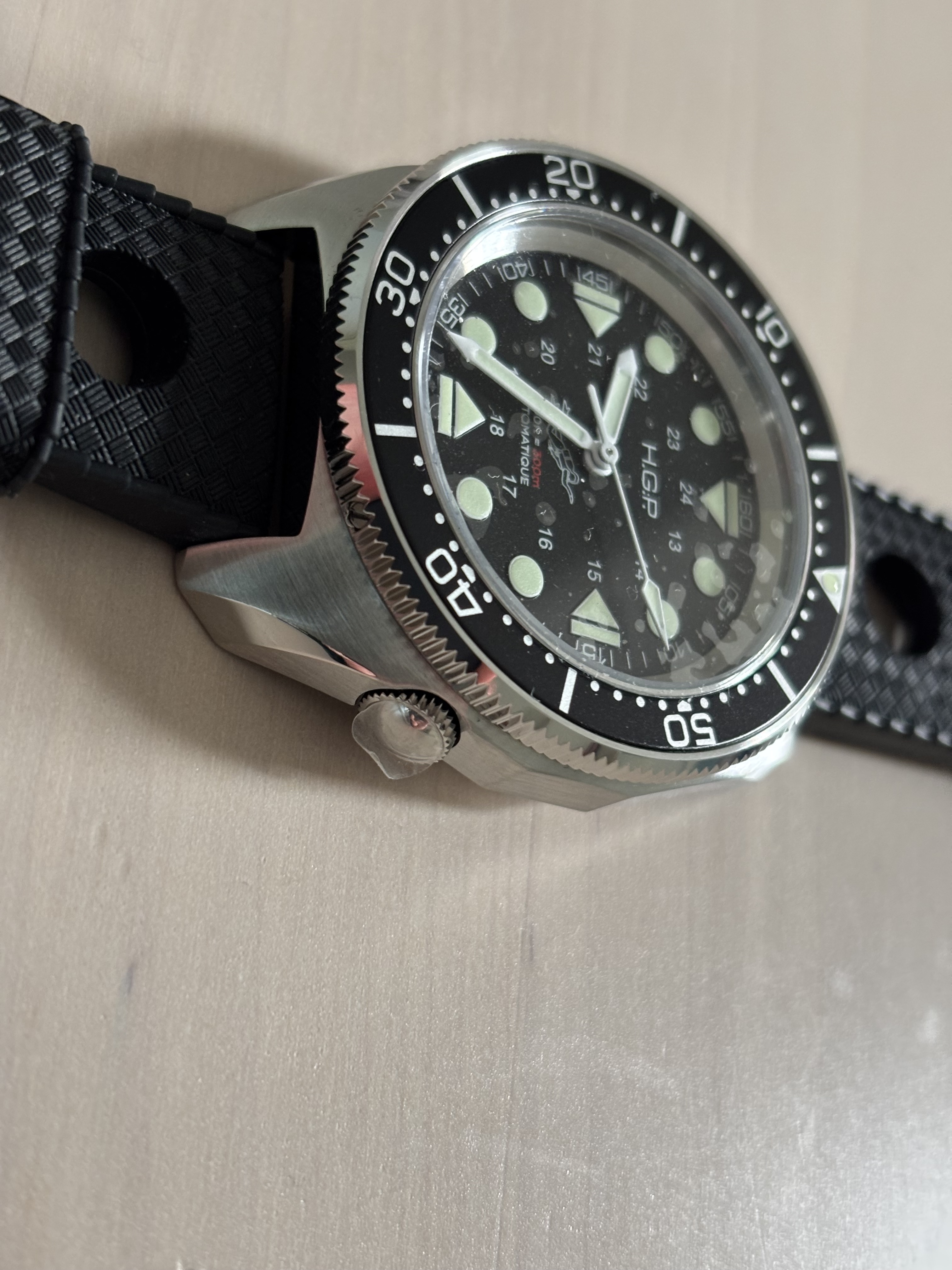 Leuk ding, irl minder druk dan de foto’s doen vermoeden. Bezel draait twee kanten op, ben ik niet gewend. En een pro vind ik dat ie van geen datum heeft, geeft rust in de kop van Louisje……