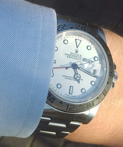 Een tijdje geleden stuitte ik op een prachtige 5500 Air-King. Die kon ik niet laten schieten, al heb ik wel even moeten nadenken. Ik had immers ‘net’ mijn Datejust 16030 verkocht, omdat ik steeds meer naar de Polar 16570 greep. Maar die is toch minder geschikt bij een overhemd, vind ik.