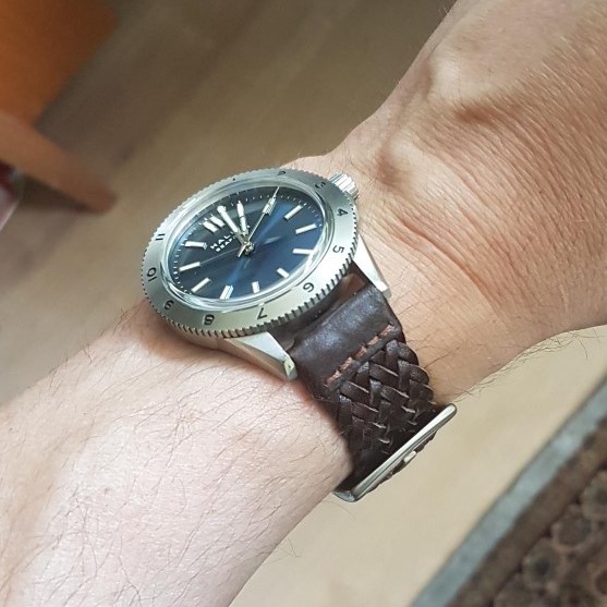 Net nog even een nieuw, gevlochten lederen bandje op mân gen 1 Seaforth gegooid: